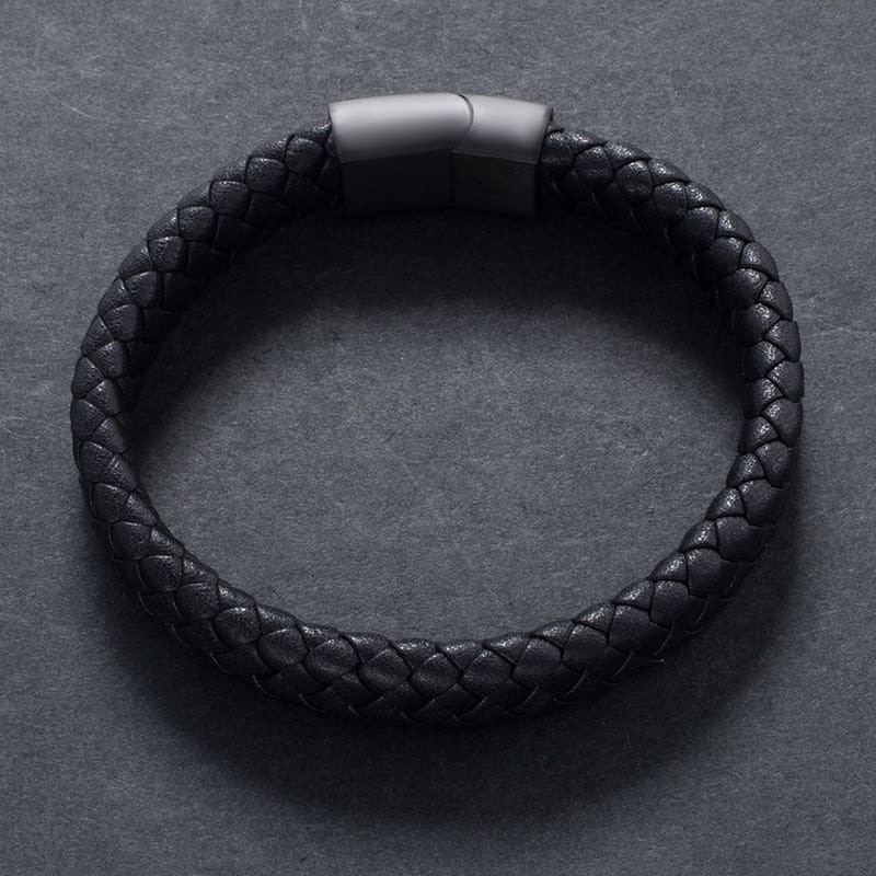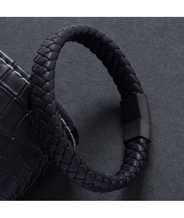 Élégant et robuste, le bracelet tressé en cuir noir allie style intemporel et confort. Parfait pour toutes les occasions, il apporte une touche unique à votre tenue.