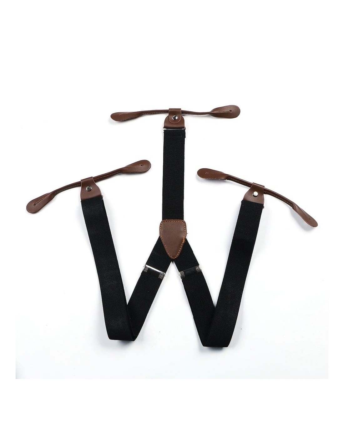 Bretelles élastique fixation bouton. Longueur réglable grâce à leur ajusteur. Fixation 6 boutons en croute de cuir. Largeur 3,5cm / Longueur 110cm
