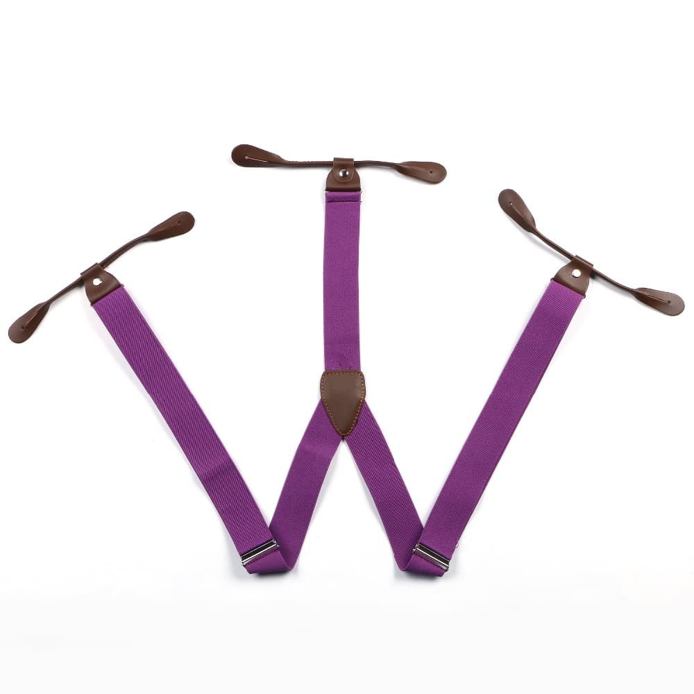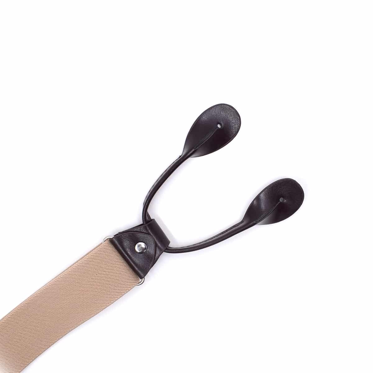 Bretelles élastique fixation bouton. Longueur réglable grâce à leur ajusteur. Fixation 6 boutons en croute de cuir. Largeur 3,5cm / Longueur 110cm