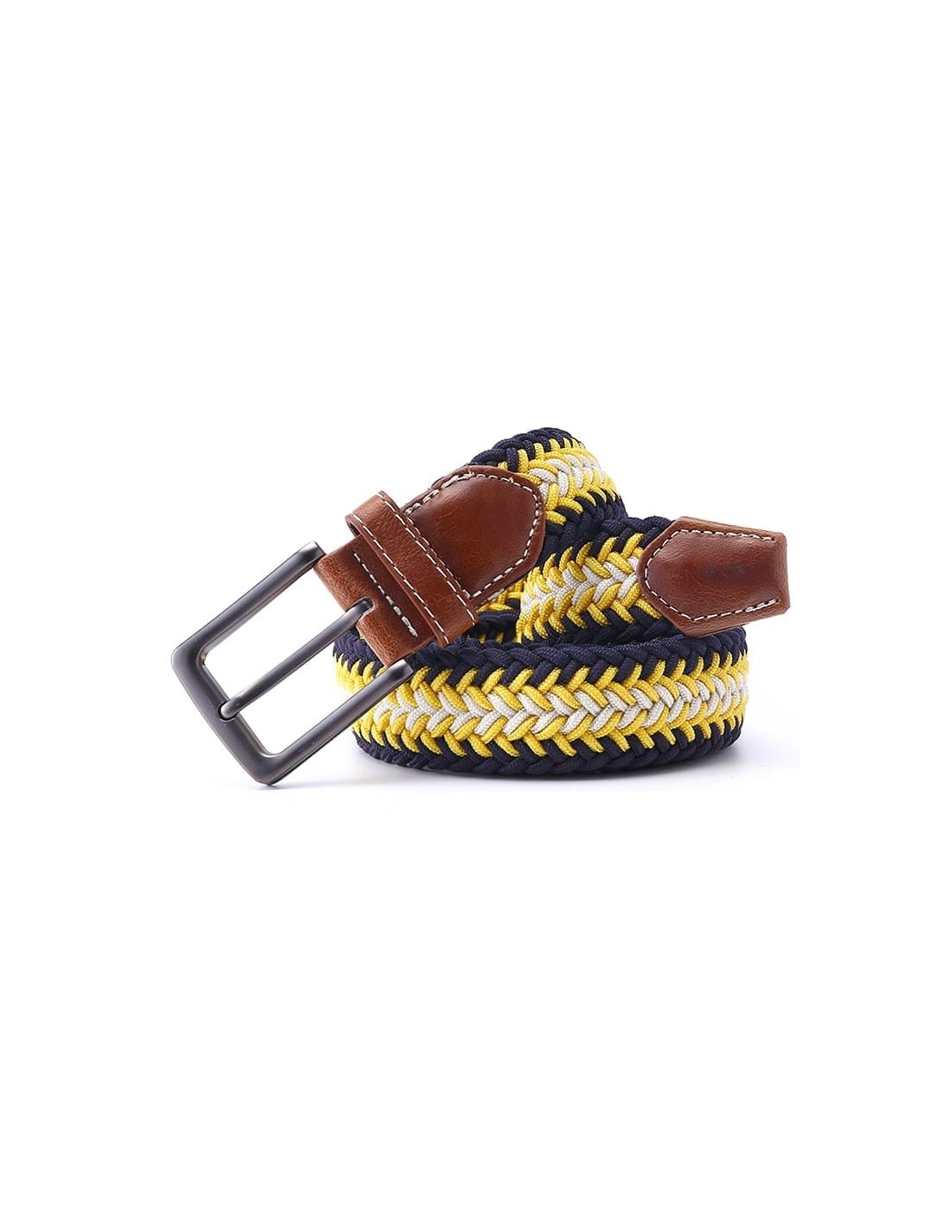 Ajoutez une touche d'élégance et de style à votre tenue avec notre Ceinture Tressée Tricolore Jaune. Conçue pour ceux qui apprécient le mélange de confort et de sophistication, cette ceinture est l'accessoire parfait pour rehausser votre look, que ce soit pour une sortie décontractée ou une occasion spéciale.