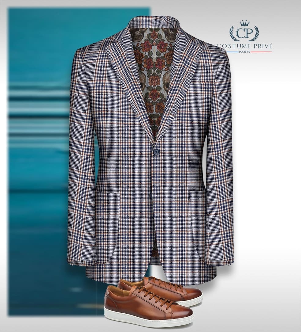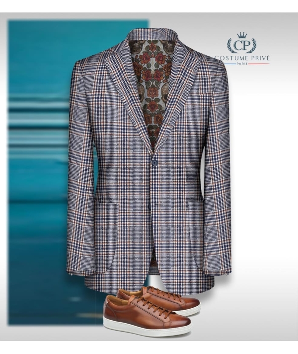 Ce Blazer Bleu prince de Galles est réalisé en sur-mesure, d'autres styles sont disponibles sur les recommandations de votre conseiller tailleur : Coupe : croisée Finition : poches droites ou en biais, revers en pointe Boutons : contrastésLe style casual chic prend tout son sens grâce aux jeux des contrastes. Couleurs, matières, finitions, le champs des possibles s'élargit. Le sur-mesure vous offre la possibilité de jouer avec tous ces paramètres. Ce Blazer Bleu carreaux orange Tweed Eté est entièrement personnalisable. Toutes les possibilités de finitions que nous vous proposons n'ont qu'un objectif : que votre vêtement corresponde à 100% à votre style, à votre image et à votre façon de vivre. Votre conseiller-tailleur vous accompagne pour vous permettre de concrétiser votre vêtement.