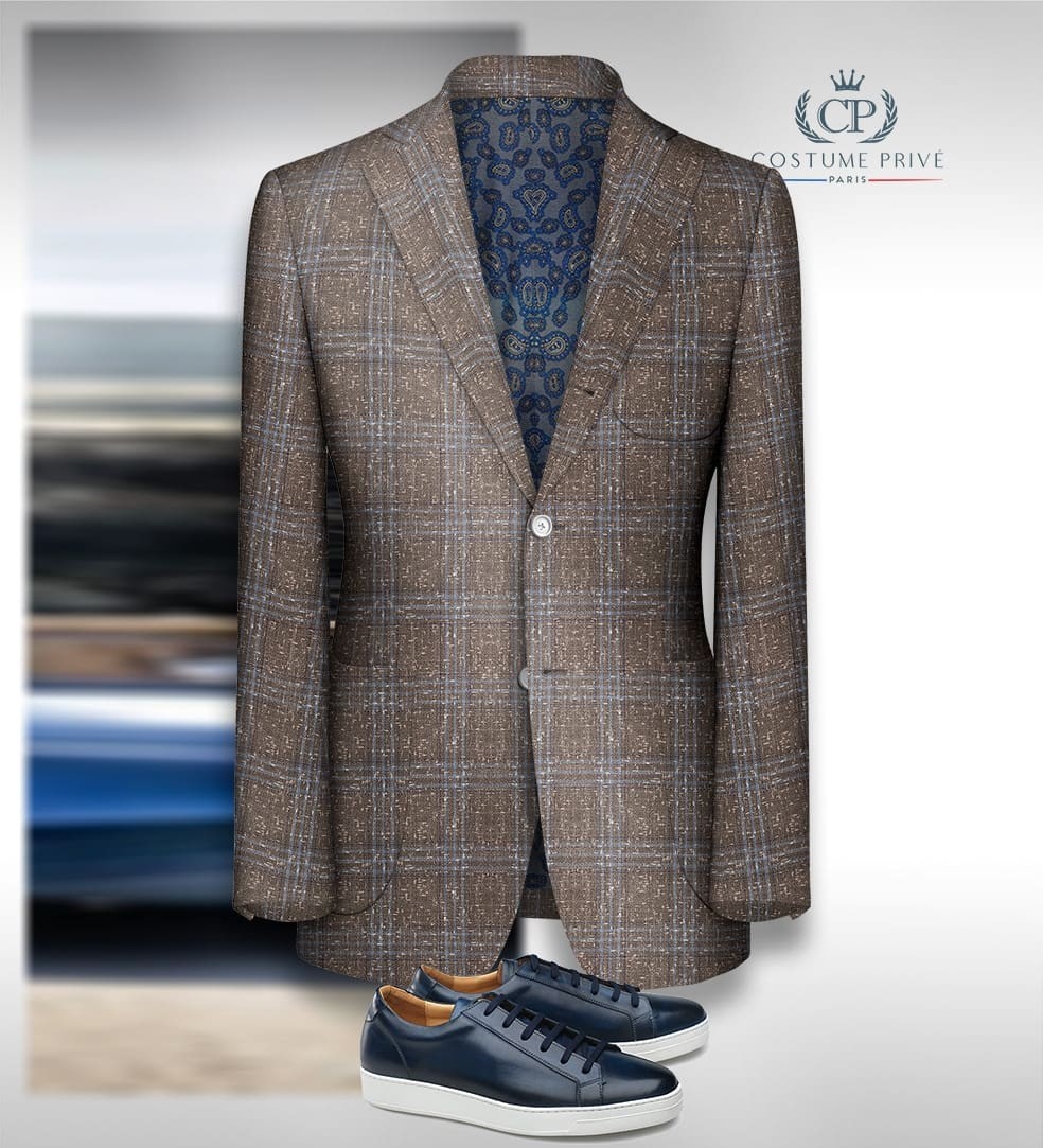 Ce Blazer brun tweed carreaux est réalisé en sur-mesure, d'autres styles sont disponibles sur les recommandations de votre conseiller tailleur : Tissus : Ariston, Loro Piana Matières : Lin, laine et soie Coupe : croisée Finition : poches droite ou en biais, revers en pointe Boutons : contrastés, cuir, métalLe style casual chic prend tout son sens grâce aux jeux des contrastes. Couleurs, matières, finitions, le champs des possibles s'élargit. Le sur-mesure vous offre la possibilité de jouer avec tous ces paramètres. Ce Blazer Marron Natté est entièrement personnalisable. Toutes les possibilités de finitions que nous vous proposons n'ont qu'un objectif : que votre vêtement corresponde à 100% à votre style, à votre image et à votre façon de vivre. Votre conseiller-tailleur vous accompagne pour vous permettre de concrétiser votre vêtement.
