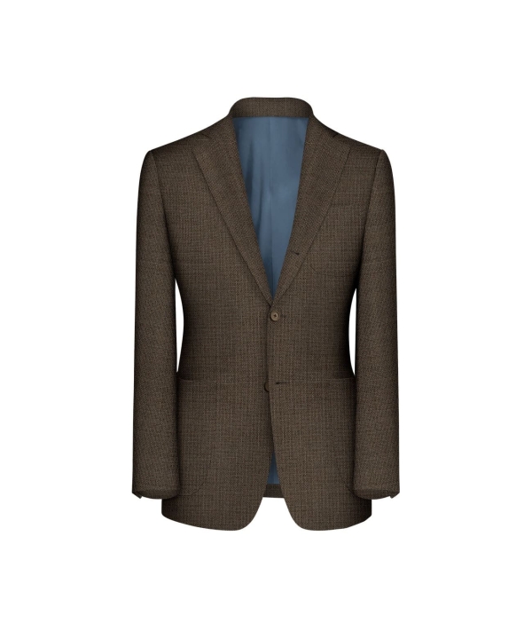 Veste marron brun nattée laine superfine, couleur marron brun froid, idéale pour un style casual chic Tissu Laine superfine estivale, pour apporter fraicheur et tenue 2 boutons Coupe droite, revers à cran, 3 poches appliquées