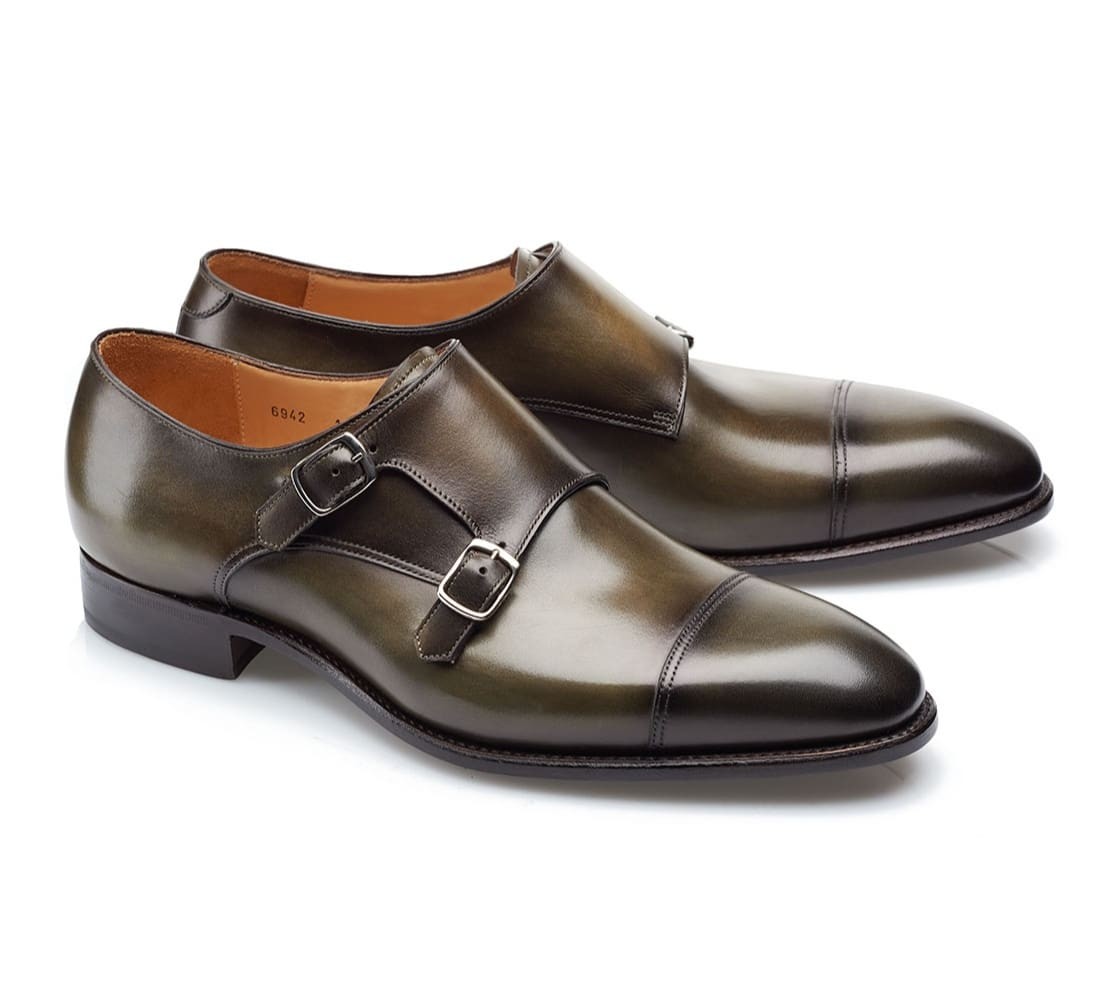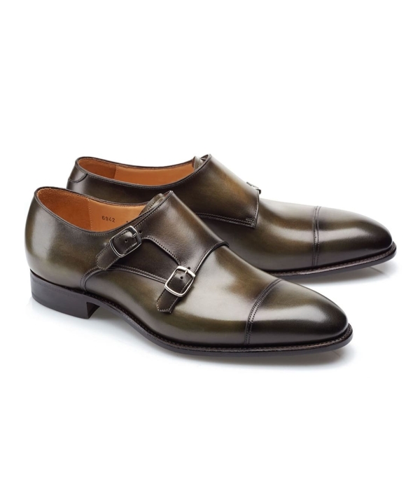Chaussures double boucle vert patiné : Une combinaison élégante, les chaussures Andrew Double Buckle de Carlos Santos Shoes sont une option toujours à la mode lorsqu'il s'agit de remplacer les lacets traditionnels par des sangles et des buckles. Conçus pour l'homme sophistiqué, avec des semelles en cuir, à la recherche d'une apparence plus audacieuse, les Andrew Double Buckle sont consues selon la méthode artisanale de confection Goodyear Welted et sont disponibles dans les couleurs Bosco, Braga, Coimbra, Noir Shadow, Wine Shadow et Norte. Pour un style plus décontracté et moins classique, nous vous proposons aussi des baskets en cuir patiné. Avec les frontières entre la vie sociale et la vie professionnelle qui s'estompent de plus en plus, les baskets en cuir peuvent être le choix idéal pour les hommes de tous les jours. Décontractées et avec une touche d'élégance, elles se trouvent disponibles dans des couleurs intenses telles que Marron, Vert, Bleu, Bordeaux, Cognac. Les patines personnalisées leur apportent un supplément d'âme, d'élégance, de chic, qui les distinguent des simples baskets blanches attribut classique de l'univers de la pub ou de la création. Entretien Chaussures double boucle vert patiné : Prenez soin de vos chaussures en cuir, en utilisant une cire ou une crème appropriée pour couvrir toute leur surface. Avec un chiffon en coton, essuyez délicatement pour retirer l'excédent de produit. Baskets cuir bordeaux patiné
