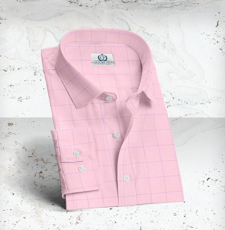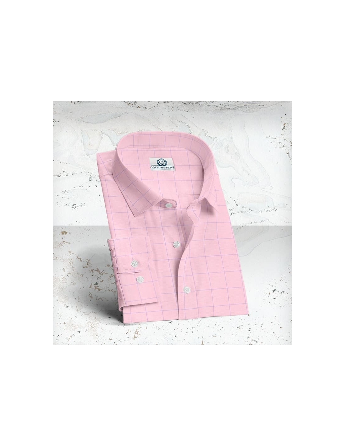 Chemise à carreaux rose et bleu. Tissu Thomas Mason Personnalisez votre chemise sur-mesure : 25 cols 8 poignets 9 modèles de poche Broderie Boutons Surpicures ...