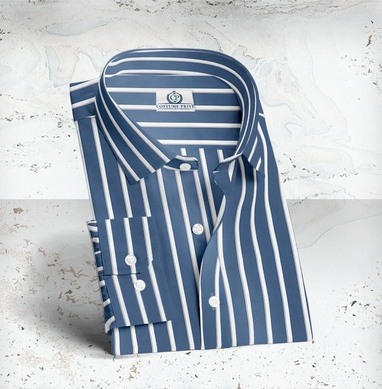Chemise à rayures bleues et blanches - Style classique pour hommes.