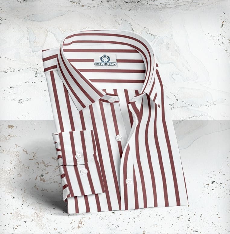 Chemise à rayures rouges. Tissu Thomas Mason Personnalisez votre chemise sur-mesure : 25 cols 8 poignets 9 modèles de poche Broderie Boutons Surpicures ...