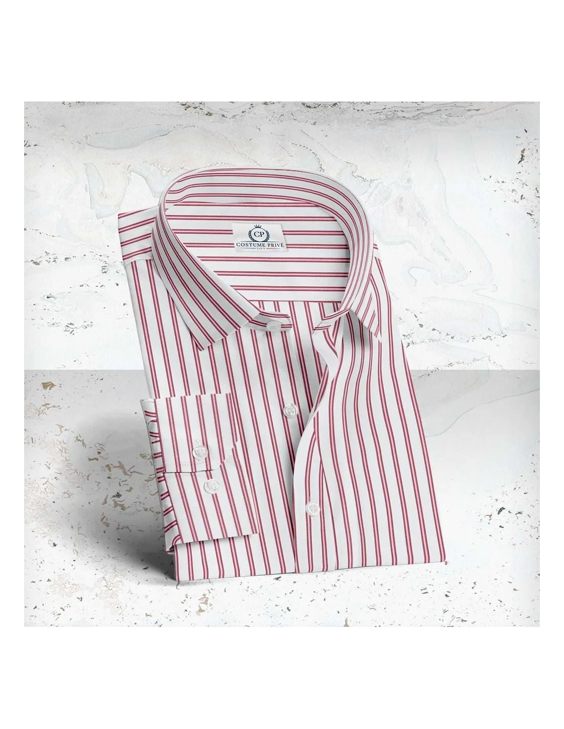 Chemise blanche à double rayure rouge - Style élégant pour hommes