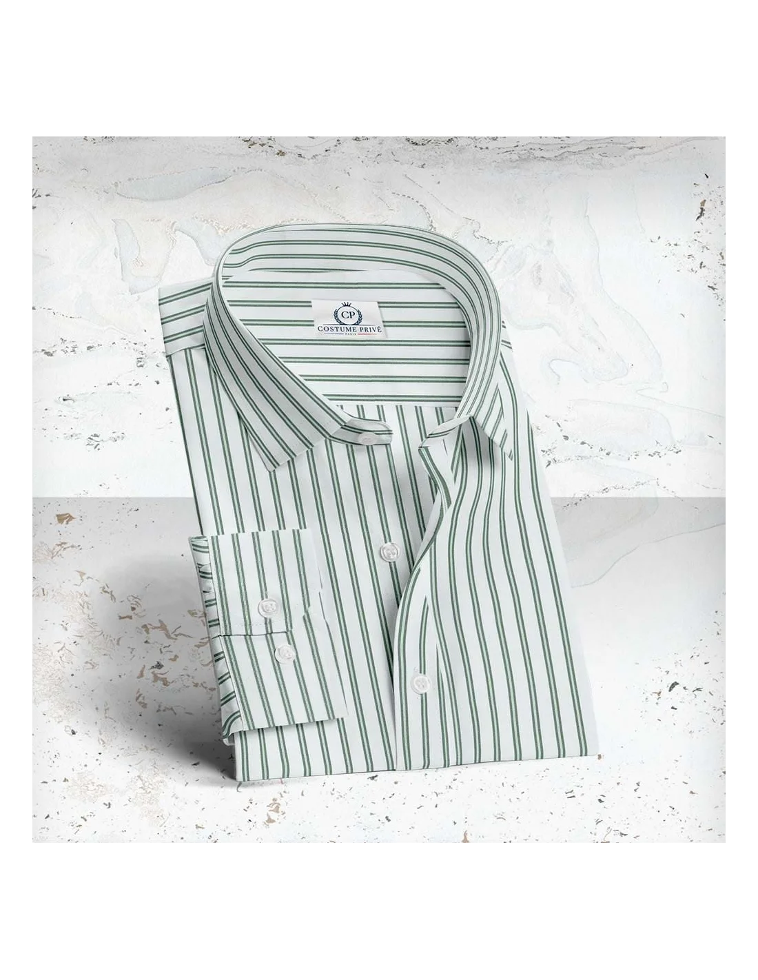 Chemise blanche à double rayure verte - Style élégant pour hommes