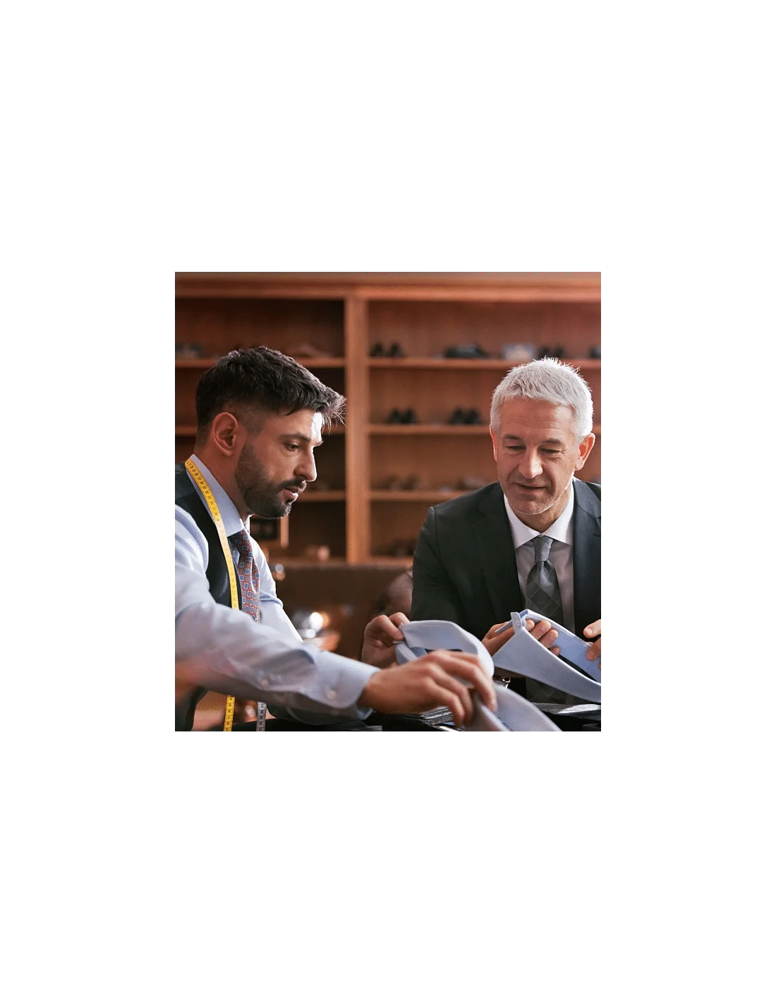 Chemise blanche avec double rayure verte. Tissu Thomas Mason Personnalisez votre chemise sur-mesure : 25 cols 8 poignets 9 modèles de poche Broderie Boutons Surpicures ...