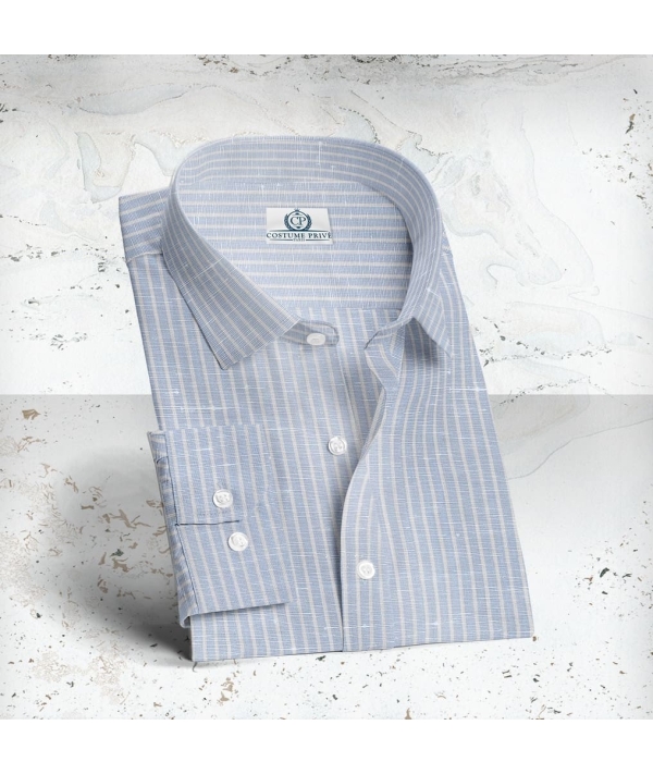 Chemise bleu Lin rayures blanches
