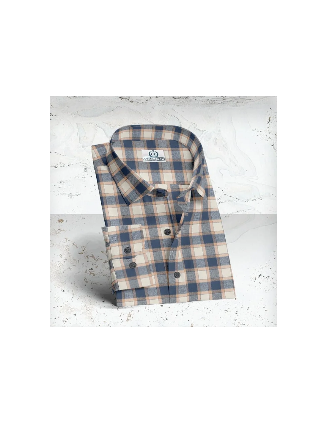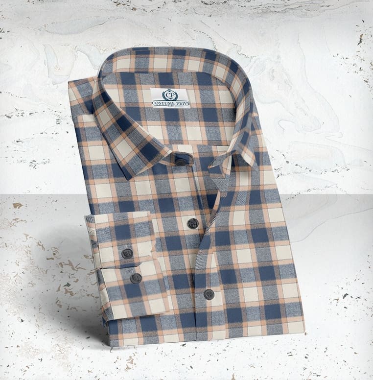 Chemise carreaux beige sur mesure confectionnée à l’aide des meilleurs tissus italiens, selon la grande tradition de confection. Qualité, luxe et une longue tradition. La marque anglaise Thomas Mason naît en 1796, en pleine révolution industrielle, lorsque sir Thomas Mason, devinant les potentialités de cette période, crée à Leeds l’une des premières usines de tissus en coton pour chemises. Depuis lors, les tissus Thomas Mason sont une référence pour les passionnés du goût britannique et pour les amateurs des fils les plus fins, tirés des lins et des cotons les plus précieux au monde. Après deux cent ans de succès, en 1992, Thomas Mason est rachetée par la famille Albini de Bergame et elle intègre alors la grande tradition textile italienne. Découvrez nos collections En ce qui concerne la confection, nous avons plusieurs ateliers en fonction de votre recherche de style, de finitions, de budget et de délai. Nous vous conseillerons pour que vous ayez une chemise qui corresponde à vos souhaits. Nous travaillons avec les meilleurs artisans français, italiens ou d'Europe de l'Est.Le sur-mesure vous offre la possibilité de jouer avec tous ces paramètres. Cette Chemise carreaux beige est entièrement personnalisable. Toutes les possibilités de finitions que nous vous proposons n'ont qu'un objectif : que votre vêtement corresponde à 100% à votre style, à votre image et à votre façon de vivre. Votre conseiller-tailleur vous accompagne pour vous permettre de concrétiser votre vêtement. Costume Privé Paris vous propose un service tailleur de réalisation de costumes sur-mesure digne des grandes maisons de luxe. Associant une qualité remarquable des tissus, une fabrication respectueuse de la tradition, un conseil passionné et exigeant et enfin une service personnalisé qui vous fait changer votre perception du shopping. Le sur-mesure est avant tout un art de vivre, c'est notre philosophie. La qualité remarquable des tissus est garantie par la collaboration avec les plus grands drapiers internationaux tels Loro Piana, Holland & Sherry, Scabal et Dormeuil et Thomas Mason pour les tissus de chemise La confection n'est pas en reste. A quoi servirait l'avoir une Ferrari sur le châssis d'une Simca? L'atelier a été sélectionné avec soin pour garantir la meilleure tenue de votre vêtement sur-mesure dans le temps et le respect des délais de production. Cet atelier confectionne des marques prestigieuses, telles que Givenchy, Kenzo et Dormeuil Sur-Mesure. Le type de montage que j'ai retenu pour les collections business est un montage semi-traditionnel. Il respecte le savoir-faire et est un très bon compromis entre excellente tenue et cout raisonnable. Pour les puristes, il est aussi possible de choisir un entoilage total, ou alors un style casual sans entoilage pour des blazers-chemises très italiens. La coupe est enfin un critère clé pour votre style. Je n'ai pas de dictat car chacune fait du sens en fonction de votre morphologie et de l'esprit que vous voulez transmettre. Qu'elle soit anglaise, romaine ou napolitaine, votre épaule s'inscrit dans votre personnalité. Au même titre que l'ajustement d'une taille, d'une manche ou d'une cuisse. Que le choix du type de padding pour votre épaulette. Si vous avez des exigences particulières, je serai ravi de m'y conformer. Enfin le service d'exception qui vous fait oublier que vous faites du shopping. Vous êtes très occupés, les déplacements dans Paris sont fastidieux, le week-end vous avez mieux à faire que courir les boutiques. Nous venons à vous. Au bureau ou à domicile, nous nous déplaçons pour que vous sélectionniez vos tissus, pour prendre vos mesures ou pour réaliser votre essayage. Nous vous livrons vos vêtements sur le lieu de votre choix. Vous n'avez pas la possibilité de nous accueillir, rencontrons nous dans l'un de nos showrooms parisiens. Vous ne savez pas où faire entretenir vos costumes? Grâce à notre Groom Service, nous passons récupérer vos vêtements. 3 jours plus tard ils vous reviennent. L'art de vivre en sur-mesure. Chemise carreaux beige