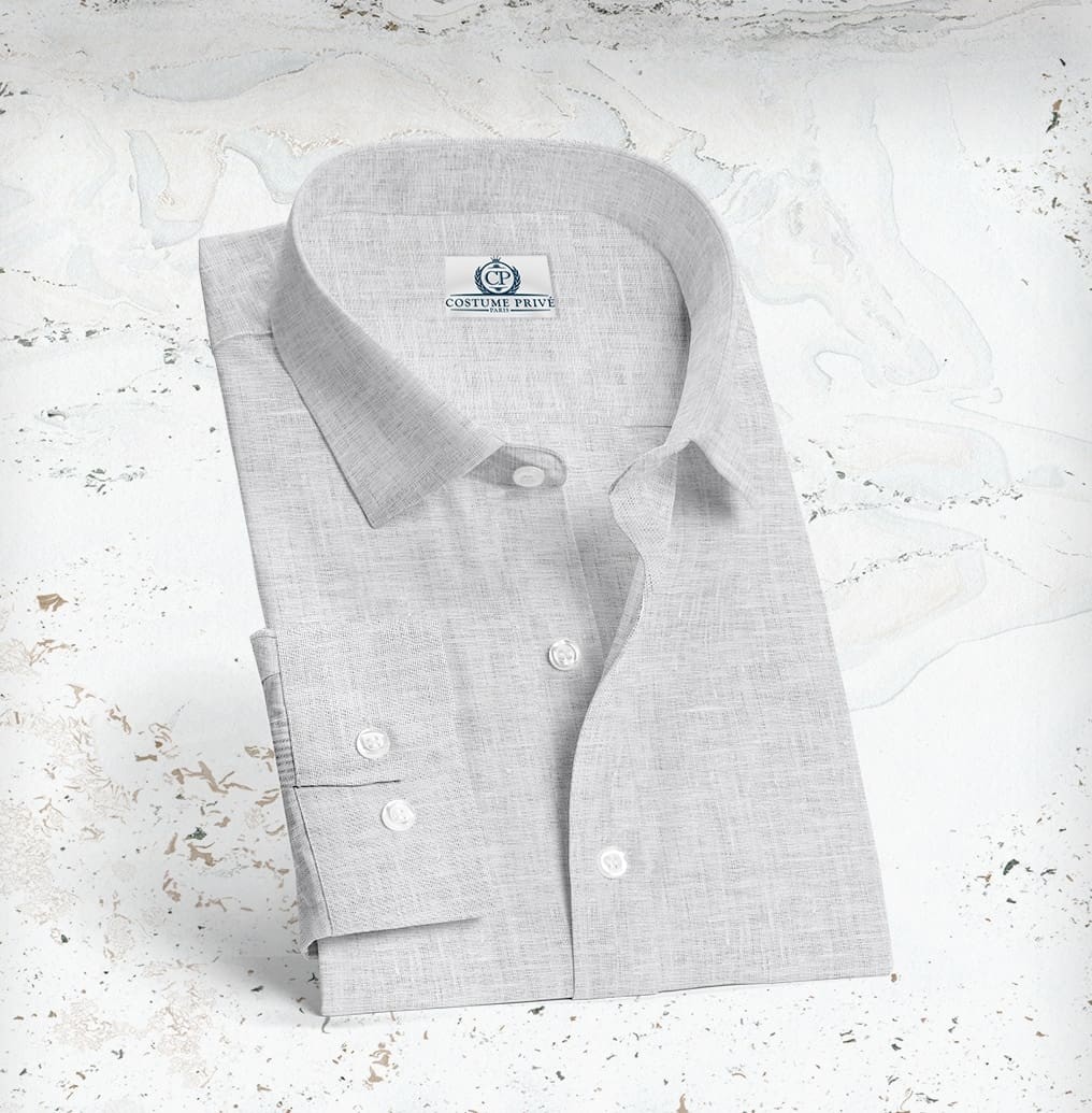 Chemise Coton Lin Blanc sur mesure confectionnées à l’aide des meilleurs tissus italiens, selon la grande tradition de confection. Qualité, luxe et une longue tradition. La marque anglaise Thomas Mason naît en 1796, en pleine révolution industrielle, lorsque sir Thomas Mason, devinant les potentialités de cette période, crée à Leeds l’une des premières usines de tissus en coton pour chemises. Depuis lors, les tissus Thomas Mason sont une référence pour les passionnés du goût britannique et pour les amateurs des fils les plus fins, tirés des lins et des cotons les plus précieux au monde. Après deux cent ans de succès, en 1992, Thomas Mason est rachetée par la famille Albini de Bergame et elle intègre alors la grande tradition textile italienne. Découvrez nos collections En ce qui concerne la confection, nous avons plusieurs ateliers en fonction de votre recherche de style, de finitions, de budget et de délai. Nous vous conseillerons pour que vous ayez une chemise qui corresponde à vos souhaits. Nous travaillons avec les meilleurs artisans français, italiens ou d'Europe de l'Est.Le sur-mesure vous offre la possibilité de jouer avec tous ces paramètres. Cette chemise Coton Lin Blanc est entièrement personnalisable. Toutes les possibilités de finitions que nous vous proposons n'ont qu'un objectif : que votre vêtement corresponde à 100% à votre style, à votre image et à votre façon de vivre. Votre conseiller-tailleur vous accompagne pour vous permettre de concrétiser votre vêtement. Costume Privé Paris vous propose un service tailleur de réalisation de costumes sur-mesure digne des grandes maisons de luxe. Associant une qualité remarquable des tissus, une fabrication respectueuse de la tradition, un conseil passionné et exigeant et enfin une service personnalisé qui vous fait changer votre perception du shopping. Le sur-mesure est avant tout un art de vivre, c'est notre philosophie. La qualité remarquable des tissus est garantie par la collaboration avec les plus grands drapiers internationaux tels Loro Piana, Holland & Sherry, Scabal et Dormeuil. La confection n'est pas en reste. A quoi servirait l'avoir une Ferrari sur le châssis d'une Simca? L'atelier a été sélectionné avec soin pour garantir la meilleure tenue de votre vêtement sur-mesure dans le temps et le respect des délais de production. Cet atelier confectionne des marques prestigieuses, telles que Givenchy, Kenzo et Dormeuil Sur-Mesure. Le type de montage que j'ai retenu pour les collections business est un montage semi-traditionnel. Il respecte le savoir-faire et est un très bon compromis entre excellente tenue et cout raisonnable. Pour les puristes, il est aussi possible de choisir un entoilage total, ou alors un style casual sans entoilage pour des blazers-chemises très italiens. La coupe est enfin un critère clé pour votre style. Je n'ai pas de dictat car chacune fait du sens en fonction de votre morphologie et de l'esprit que vous voulez transmettre. Qu'elle soit anglaise, romaine ou napolitaine, votre épaule s'inscrit dans votre personnalité. Au même titre que l'ajustement d'une taille, d'une manche ou d'une cuisse. Que le choix du type de padding pour votre épaulette. Si vous avez des exigences particulières, je serai ravi de m'y conformer. Enfin le service d'exception qui vous fait oublier que vous faites du shopping. Vous êtes très occupés, les déplacements dans Paris sont fastidieux, le week-end vous avez mieux à faire que courir les boutiques. Nous venons à vous. Au bureau ou à domicile, nous nous déplaçons pour que vous sélectionniez vos tissus, pour prendre vos mesures ou pour réaliser votre essayage. Nous vous livrons vos vêtements sur le lieu de votre choix. Vous n'avez pas la possibilité de nous accueillir, rencontrons nous dans l'un de nos showrooms parisiens. Vous ne savez pas où faire entretenir vos costumes? Grâce à notre Groom Service, nous passons récupérer vos vêtements. 3 jours plus tard ils vous reviennent. L'art de vivre en sur-mesure. Chemise Coton Lin Blanc