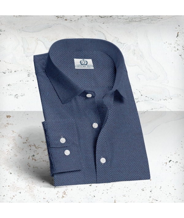 Chemise en denim bleu foncé. Tissu Thomas Mason Personnalisez votre chemise sur-mesure : 25 cols 8 poignets 9 modèles de poche Broderie Boutons Surpicures ...