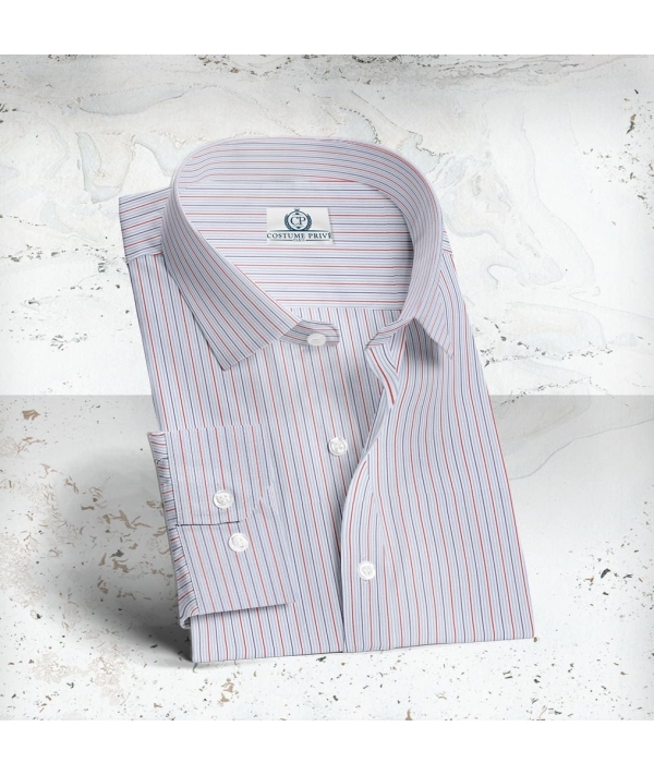 Chemise Fines Rayures Bleu Rouge