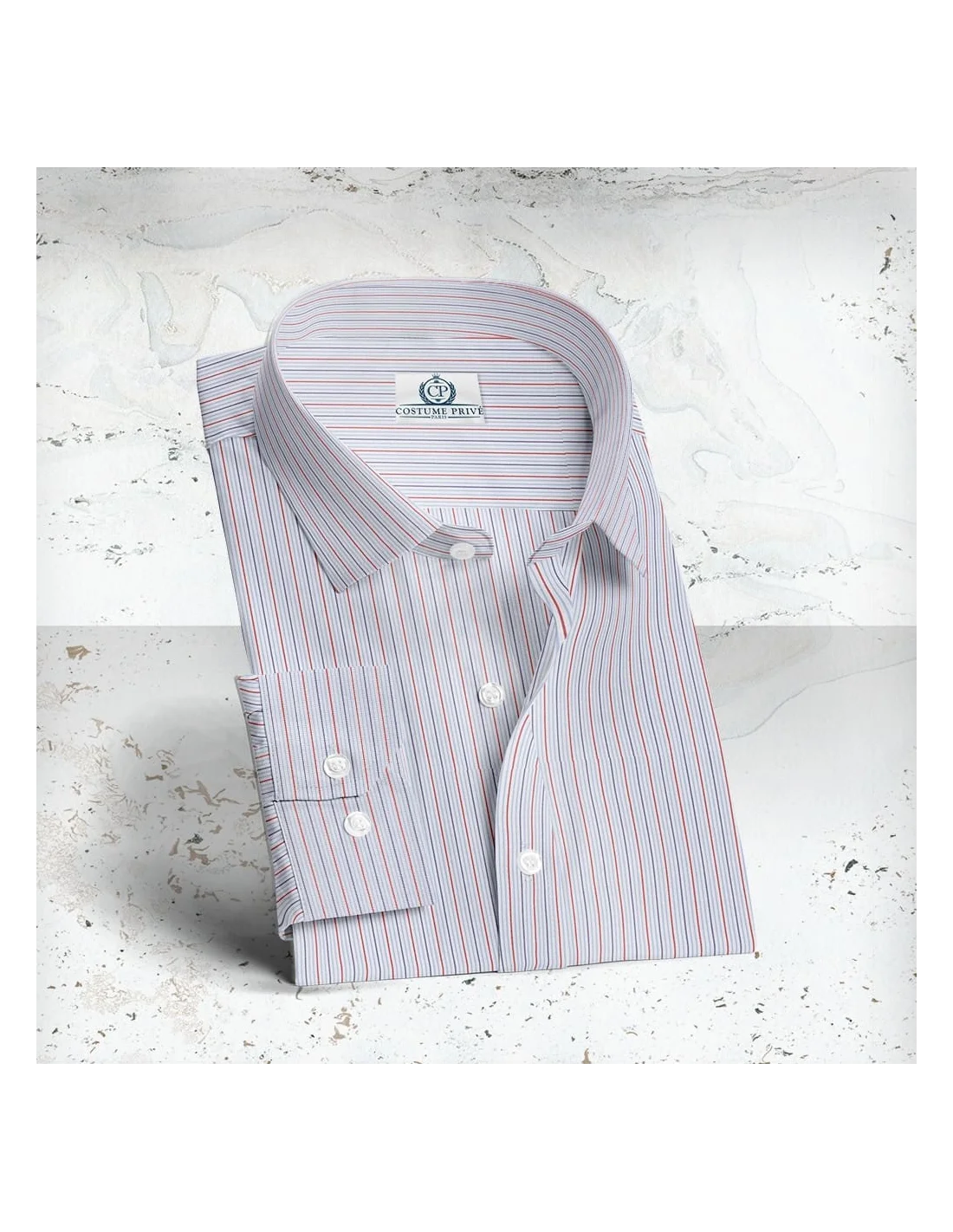 Chemise Fines Rayures Bleu Rouge sur mesure confectionnée à l’aide des meilleurs tissus italiens, selon la grande tradition de confection. Qualité, luxe et une longue tradition. La marque anglaise Thomas Mason naît en 1796, en pleine révolution industrielle, lorsque sir Thomas Mason, devinant les potentialités de cette période, crée à Leeds l’une des premières usines de tissus en coton pour chemises. Depuis lors, les tissus Thomas Mason sont une référence pour les passionnés du goût britannique et pour les amateurs des fils les plus fins, tirés des lins et des cotons les plus précieux au monde. Après deux cent ans de succès, en 1992, Thomas Mason est rachetée par la famille Albini de Bergame et elle intègre alors la grande tradition textile italienne. Découvrez nos collections En ce qui concerne la confection, nous avons plusieurs ateliers en fonction de votre recherche de style, de finitions, de budget et de délai. Nous vous conseillerons pour que vous ayez une chemise qui corresponde à vos souhaits. Nous travaillons avec les meilleurs artisans français, italiens ou d'Europe de l'Est.Le sur-mesure vous offre la possibilité de jouer avec tous ces paramètres. Cette Chemise Fines Rayures Bleu Rouge est entièrement personnalisable. Toutes les possibilités de finitions que nous vous proposons n'ont qu'un objectif : que votre vêtement corresponde à 100% à votre style, à votre image et à votre façon de vivre. Votre conseiller-tailleur vous accompagne pour vous permettre de concrétiser votre vêtement. Costume Privé Paris vous propose un service tailleur de réalisation de costumes sur-mesure digne des grandes maisons de luxe. Associant une qualité remarquable des tissus, une fabrication respectueuse de la tradition, un conseil passionné et exigeant et enfin une service personnalisé qui vous fait changer votre perception du shopping. Le sur-mesure est avant tout un art de vivre, c'est notre philosophie. La qualité remarquable des tissus est garantie par la collaboration avec les plus grands drapiers internationaux tels Loro Piana, Holland & Sherry, Scabal et Dormeuil et Thomas Mason pour les tissus de chemise La confection n'est pas en reste. A quoi servirait l'avoir une Ferrari sur le châssis d'une Simca? L'atelier a été sélectionné avec soin pour garantir la meilleure tenue de votre vêtement sur-mesure dans le temps et le respect des délais de production. Cet atelier confectionne des marques prestigieuses, telles que Givenchy, Kenzo et Dormeuil Sur-Mesure. Le type de montage que j'ai retenu pour les collections business est un montage semi-traditionnel. Il respecte le savoir-faire et est un très bon compromis entre excellente tenue et cout raisonnable. Pour les puristes, il est aussi possible de choisir un entoilage total, ou alors un style casual sans entoilage pour des blazers-chemises très italiens. La coupe est enfin un critère clé pour votre style. Je n'ai pas de dictat car chacune fait du sens en fonction de votre morphologie et de l'esprit que vous voulez transmettre. Qu'elle soit anglaise, romaine ou napolitaine, votre épaule s'inscrit dans votre personnalité. Au même titre que l'ajustement d'une taille, d'une manche ou d'une cuisse. Que le choix du type de padding pour votre épaulette. Si vous avez des exigences particulières, je serai ravi de m'y conformer. Enfin le service d'exception qui vous fait oublier que vous faites du shopping. Vous êtes très occupés, les déplacements dans Paris sont fastidieux, le week-end vous avez mieux à faire que courir les boutiques. Nous venons à vous. Au bureau ou à domicile, nous nous déplaçons pour que vous sélectionniez vos tissus, pour prendre vos mesures ou pour réaliser votre essayage. Nous vous livrons vos vêtements sur le lieu de votre choix. Vous n'avez pas la possibilité de nous accueillir, rencontrons nous dans l'un de nos showrooms parisiens. Vous ne savez pas où faire entretenir vos costumes? Grâce à notre Groom Service, nous passons récupérer vos vêtements. 3 jours plus tard ils vous reviennent. L'art de vivre en sur-mesure. Chemise Fines Rayures Bleu Rouge