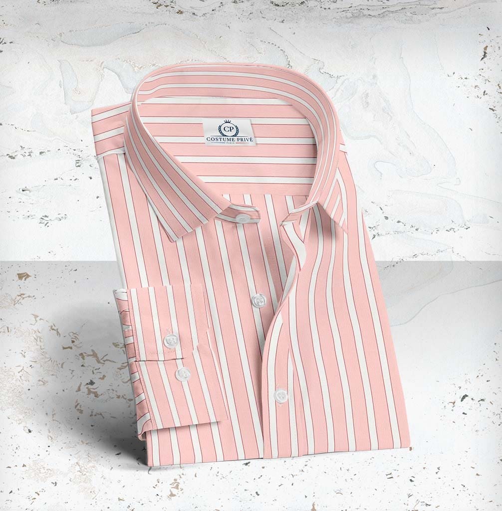 Chemise rose à rayures blanches - Style élégant pour hommes et femmes.