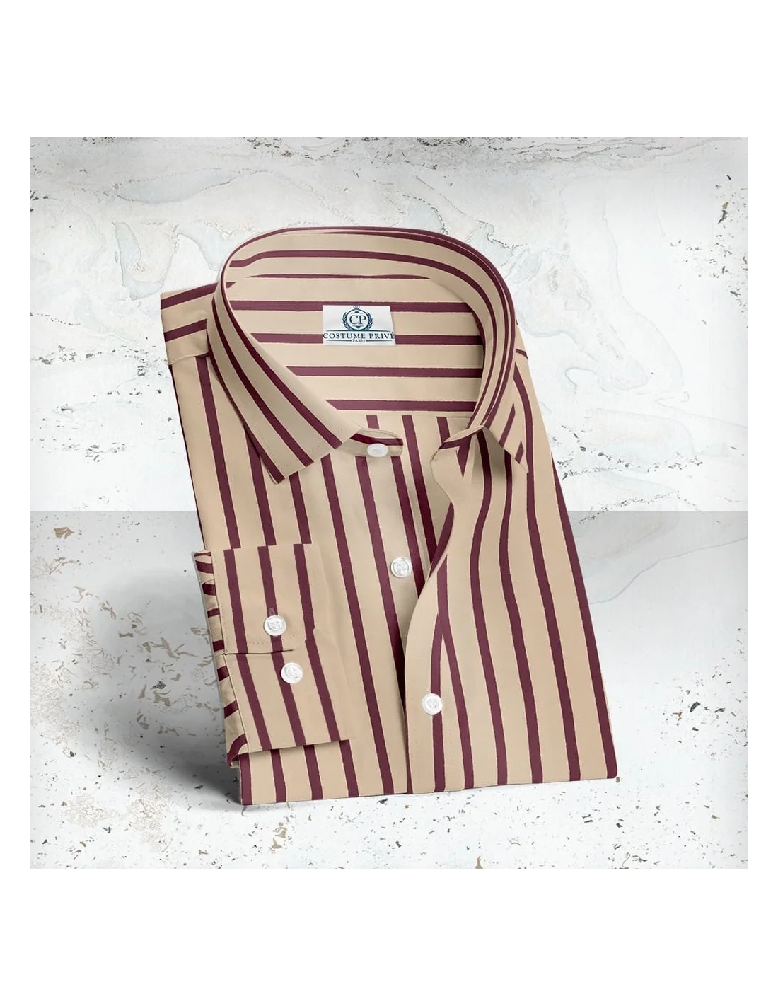Chemise velours beige large rayures bordeaux Tissu Thomas Mason Personnalisez votre chemise sur-mesure :