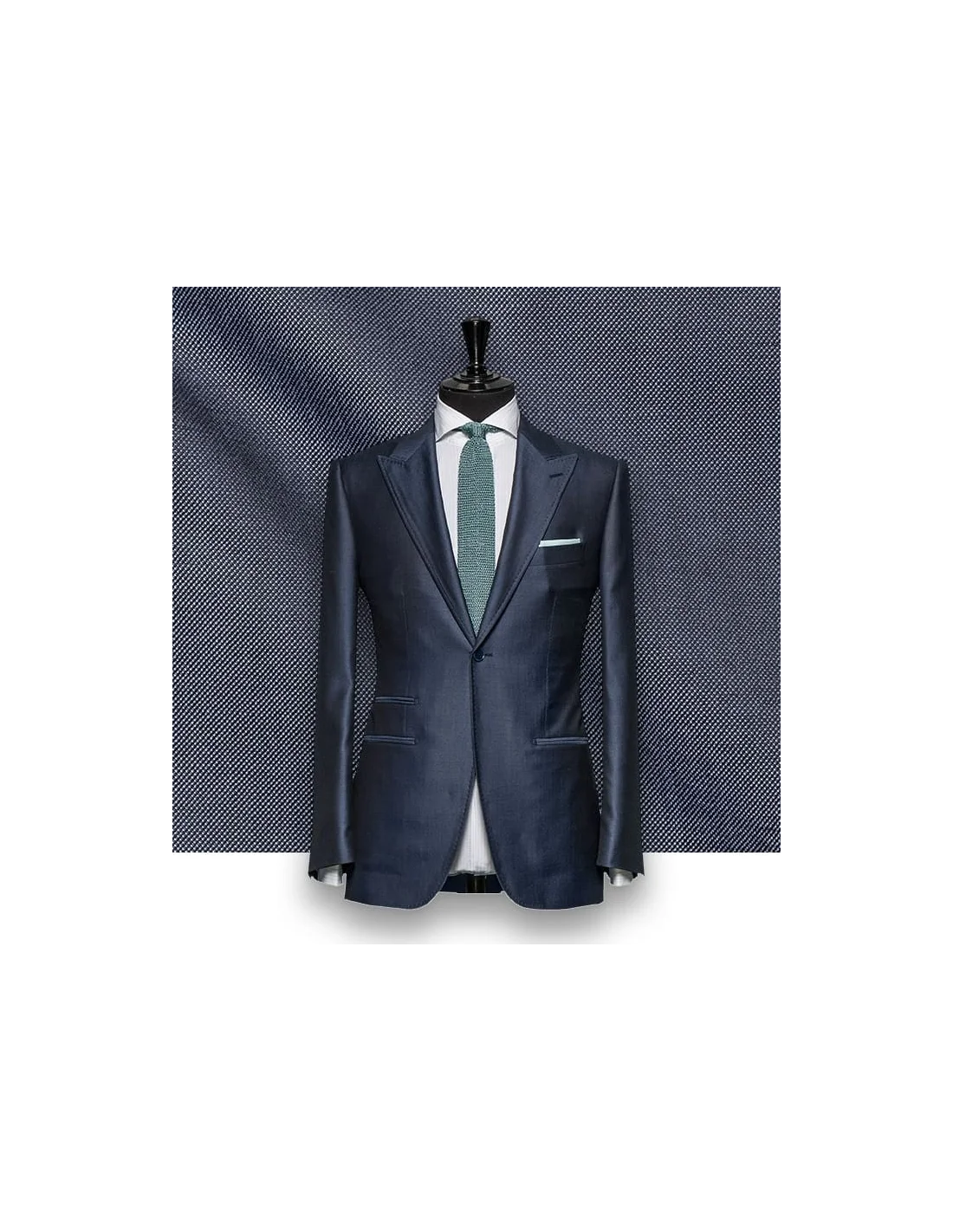 Tissu parmi notre sélection premium, doublure, boutons, type de poches, broderie d'initiales — chaque détail est personnalisable lors de votre rendez-vous en salon.