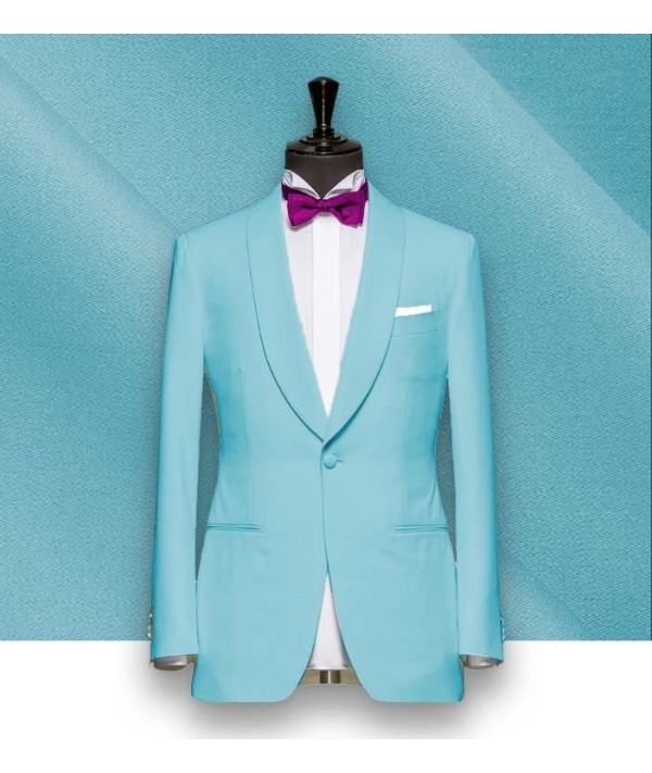 Ce Costume mariage bleu turquoise col châle est réalisé dans un style smoking sur-mesure, d'autres styles sont disponibles sur les recommandations de votre tailleur: Tissus : Super 130's, laine & soie, laine et mohair Finition : poches en biais ou passepoilées, revers en pointe