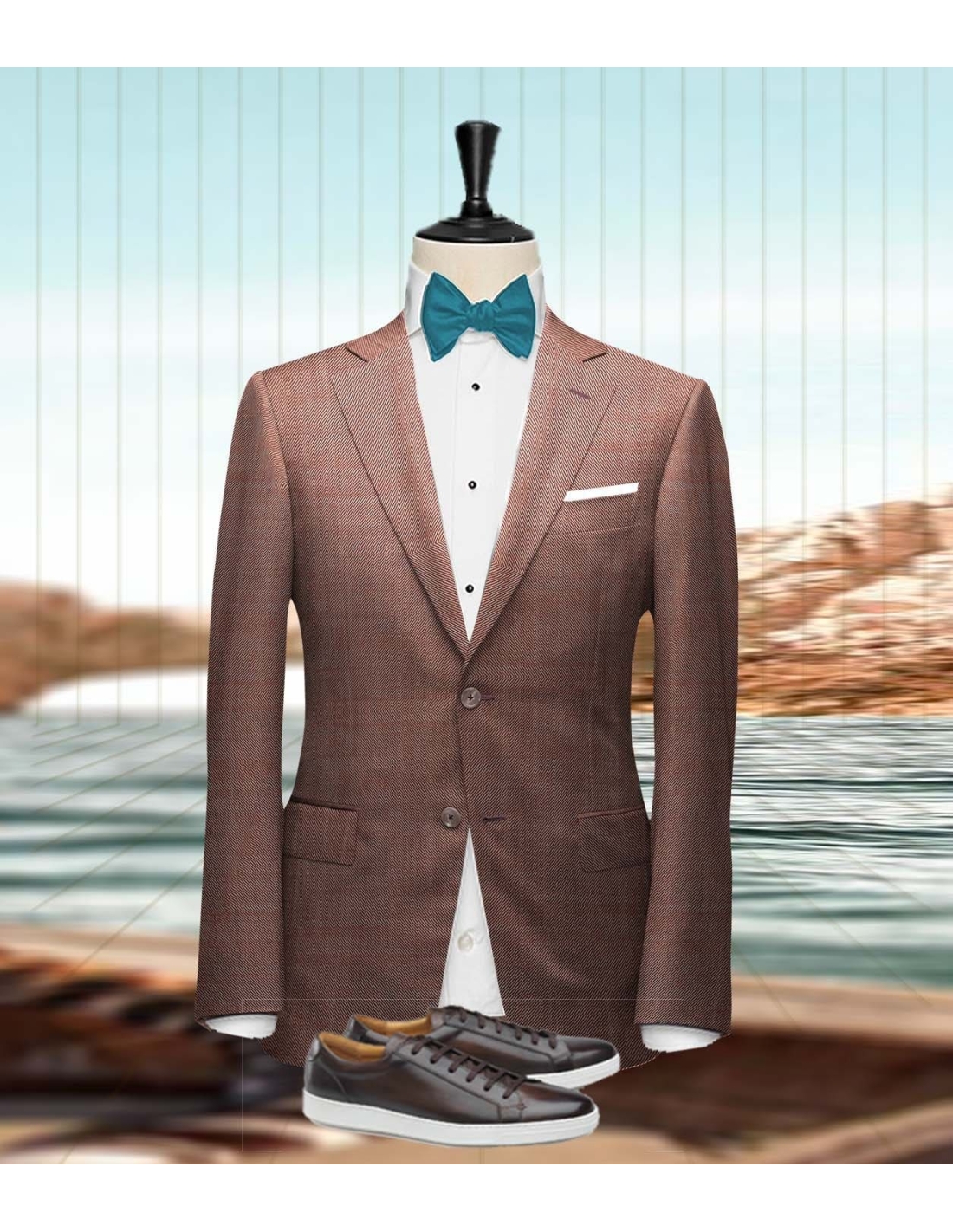 Costume mariage bordeaux clair champêtre, pour un style audacieux costume 2 pièces, peut être complété avec un gilet Poches à rabat, 2 boutons