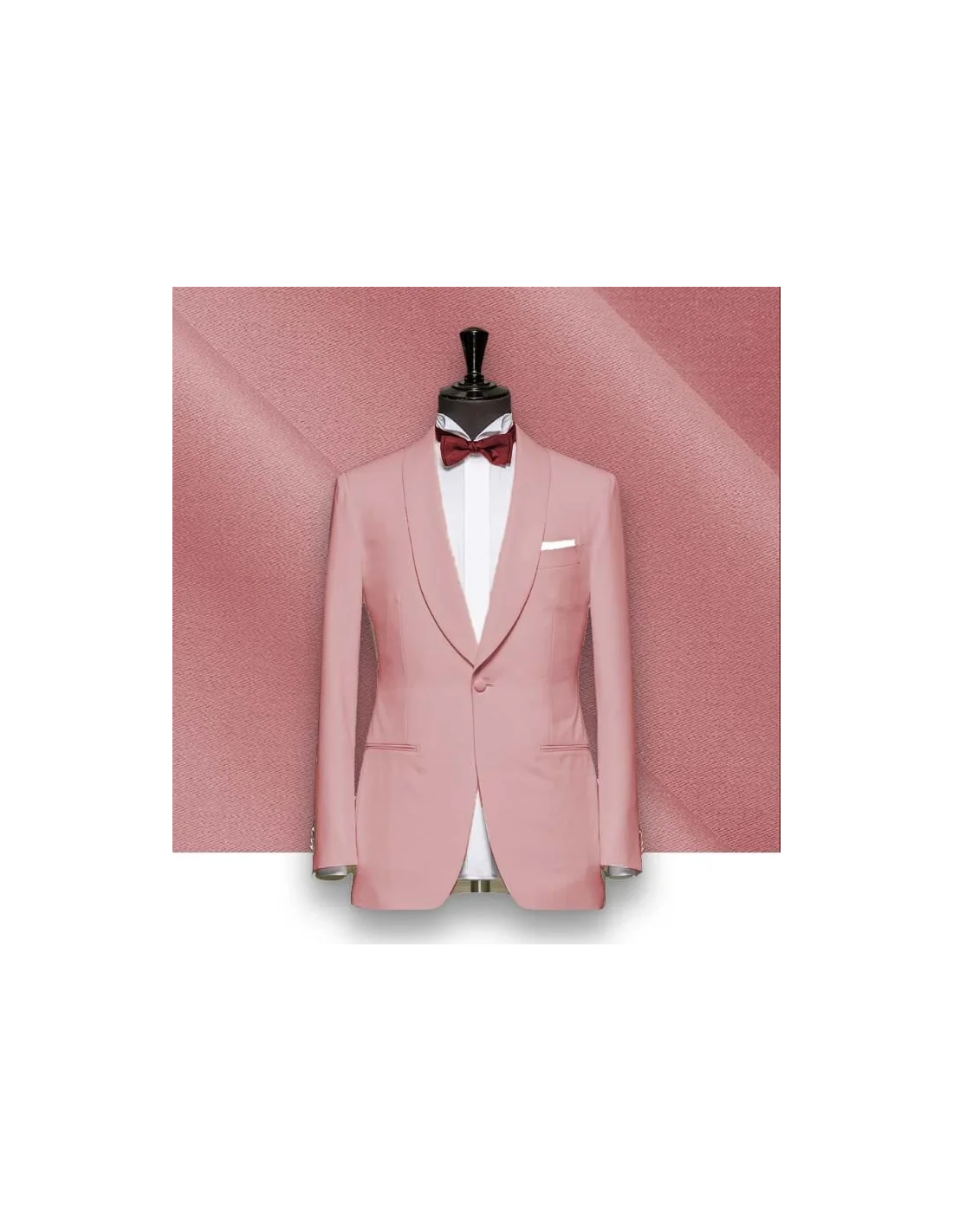 Costume de mariage de couleur corail pour homme. Parfait pour une tenue élégante et originale lors d'un mariage. col revers châle ton sur ton Poches passepoilées, 1 bouton recouvert de tissu