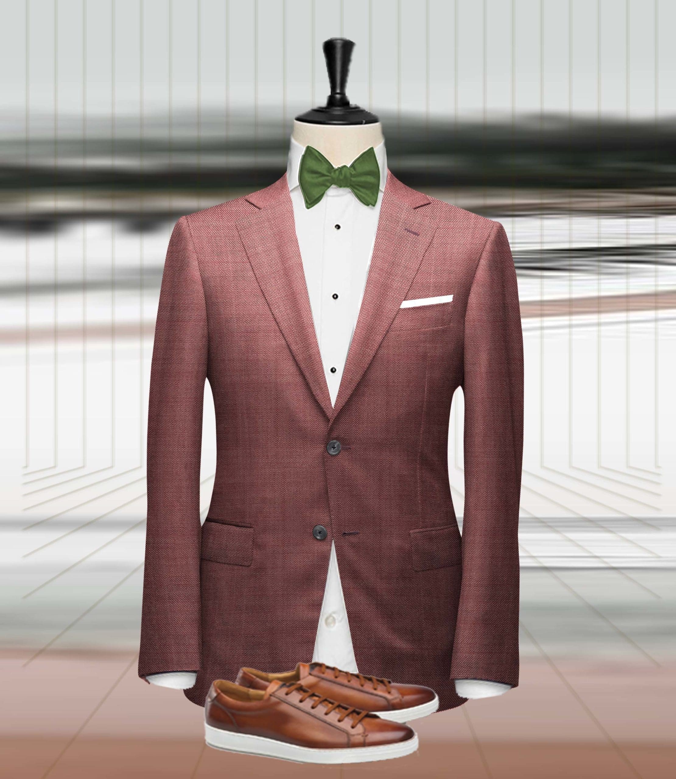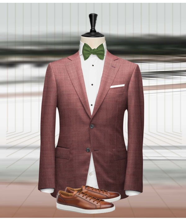 Costume mariage rouge clair champêtre, pour un style audacieux costume 2 pièces, peut être complété avec un gilet Poches à rabat, 2 boutons