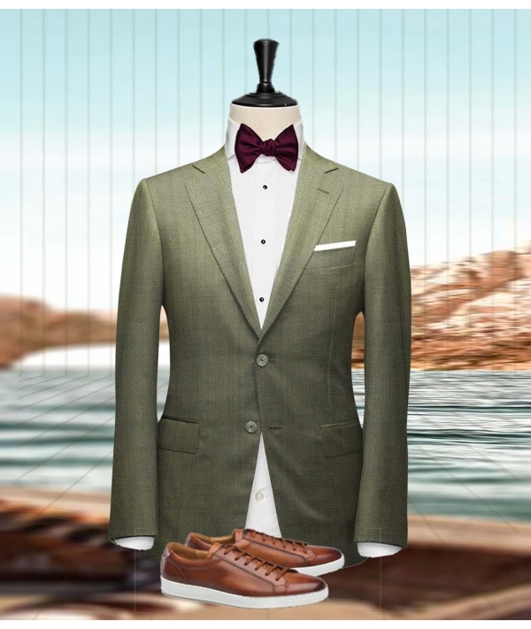 Ce Costume mariage vert clair champêtre est réalisé dans un style smoking sur-mesure, d'autres styles sont disponibles sur les recommandations de votre tailleur: Tissus : Super 130's, laine & soie, laine et mohair Finition : poches en biais ou passepoilées, revers en pointe