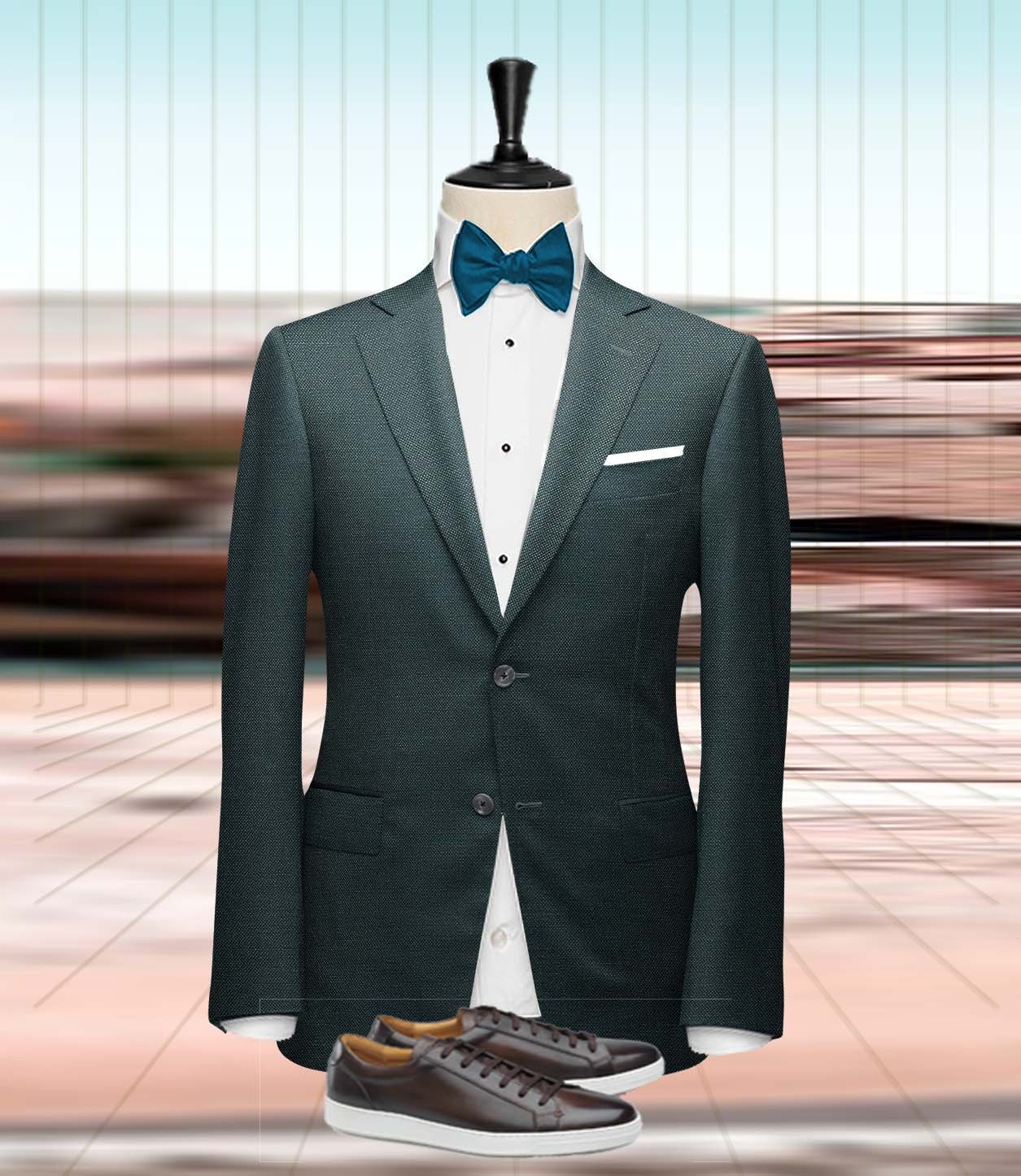 Ce Costume mariage vert paon champêtre est réalisé dans un style smoking sur-mesure, d'autres styles sont disponibles sur les recommandations de votre tailleur: Tissus : Super 130's, laine & soie, laine et mohair Finition : poches en biais ou passepoilées, revers en pointe