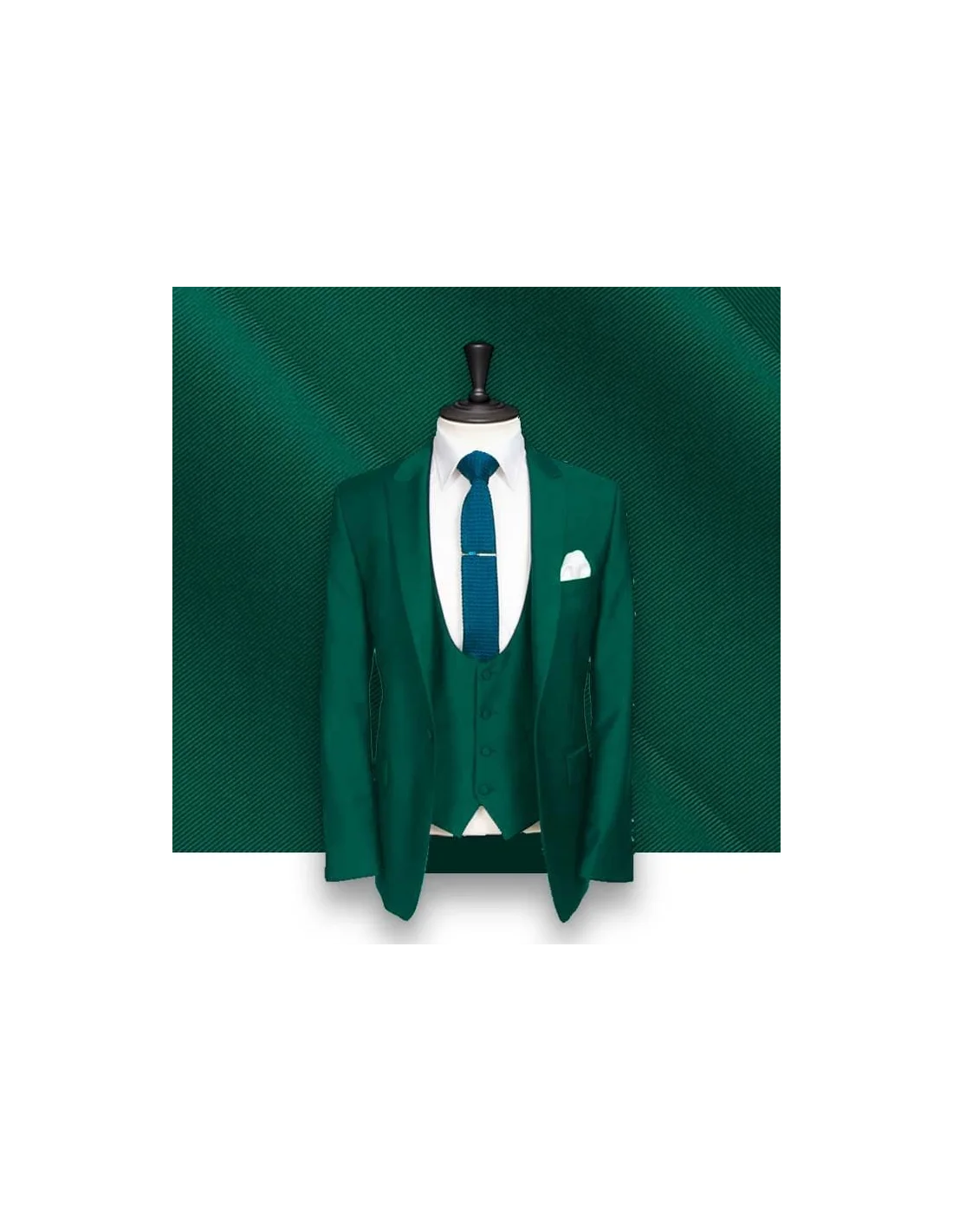 Optez pour l'élégance audacieuse avec ce costume mariage vert intense, une pièce maîtresse qui revisite les codes du chic masculin. Sa teinte profonde et sa conception adaptée à toutes les saisons en font un choix polyvalent pour célébrer une union en plein air ou en intérieur. Associez-le à une chemise blanche et des accessoires en cuir pour un style impeccable et moderne lors de votre grand jour.