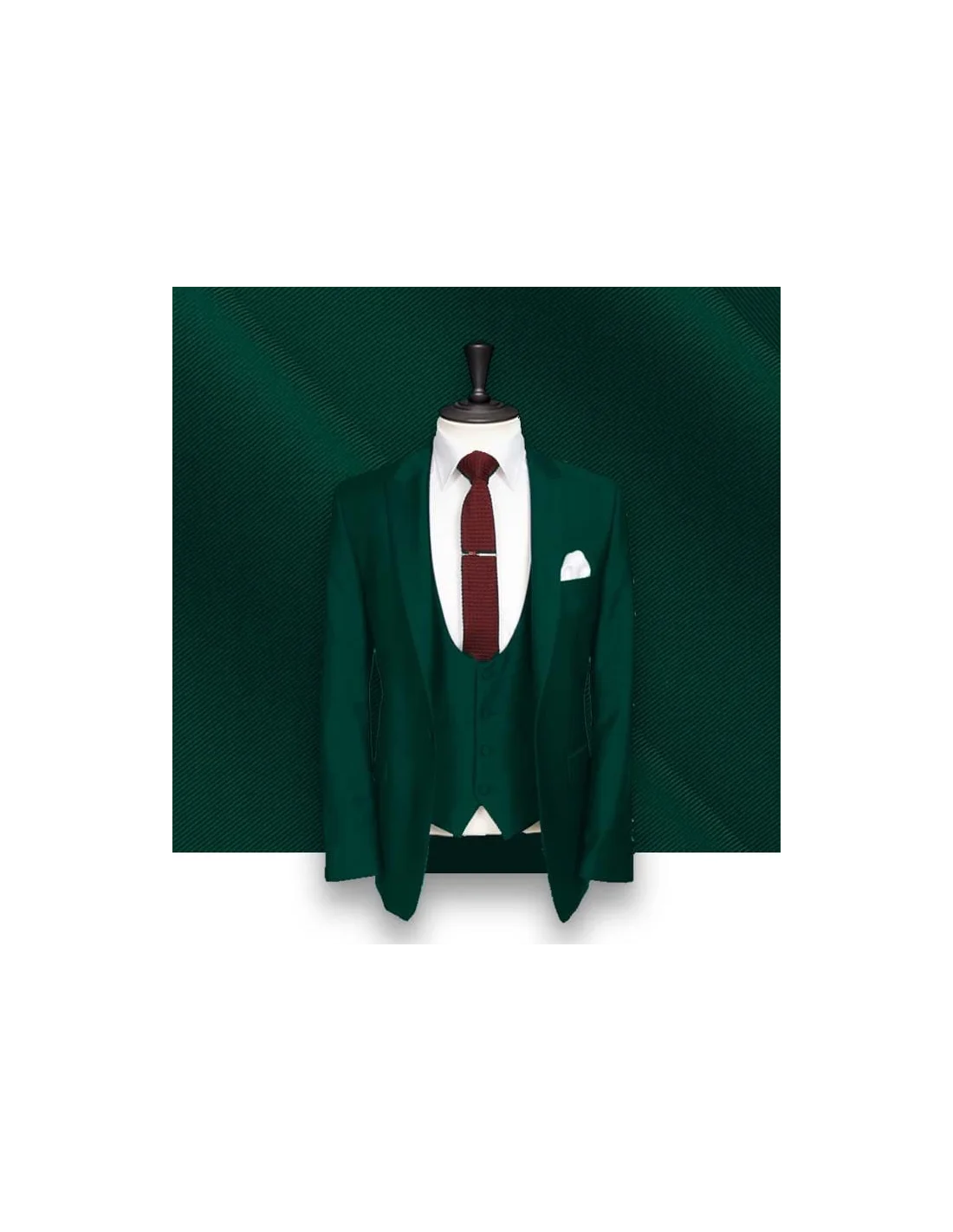 Optez pour l'élégance intemporelle avec ce costume mariage vert sapin, une pièce maîtresse conçue pour sublimer votre allure lors du grand jour. Sa teinte profonde et sa conception adaptée à toutes les saisons en font un choix polyvalent pour une cérémonie estivale ou hivernale. Portez-le avec une chemise blanche et des chaussures brunes pour un contraste raffiné qui mettra en valeur votre tenue de marié.