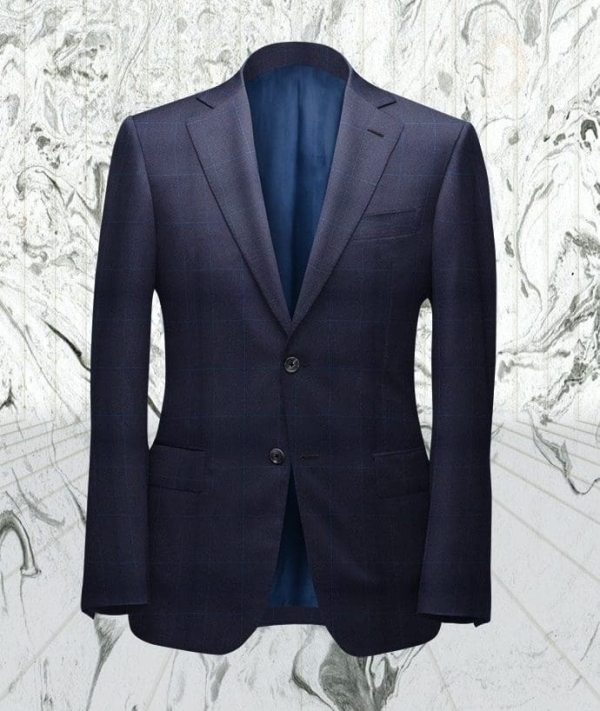 Un costume dandy. Ce Costume bleu à carreaux vous apporte style et distinction. Flanelle très légère et confortable. Super 110's. 2 boutons. Coupe droite, revers à cran, 2 poches droites à rabat.