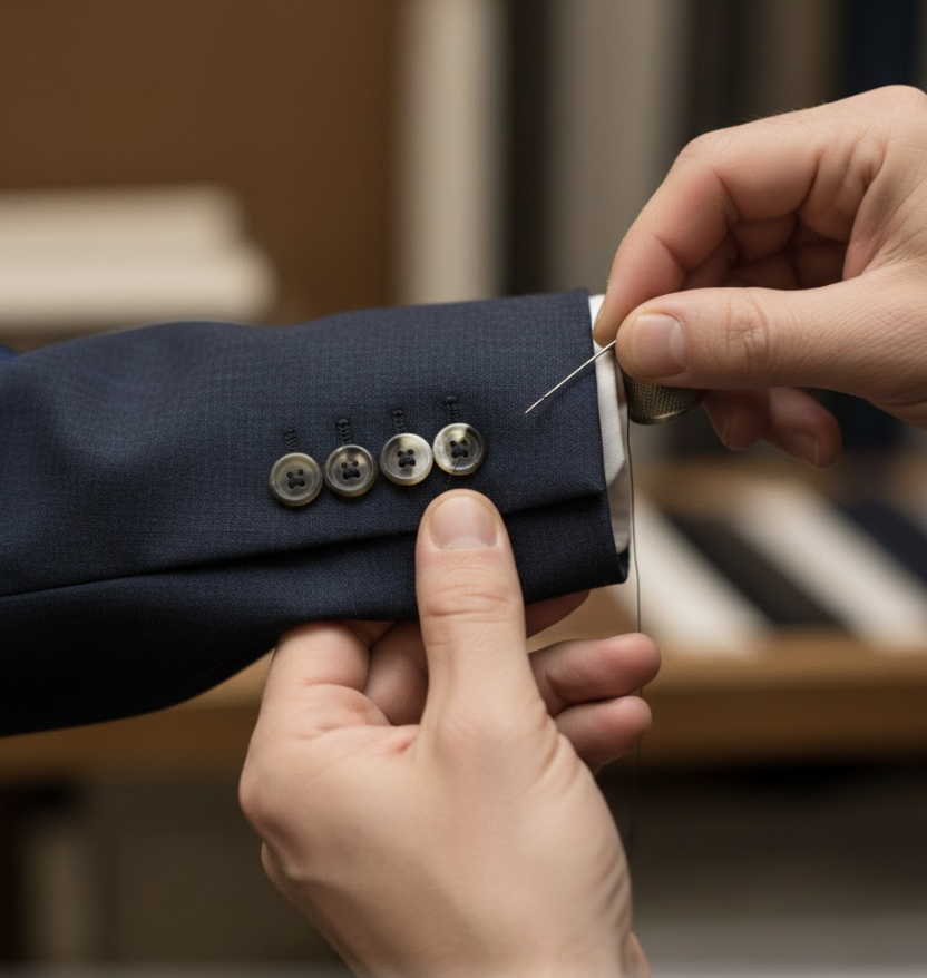 Les détails de finition distinguent un costume sur mesure d'un vêtement industriel :
