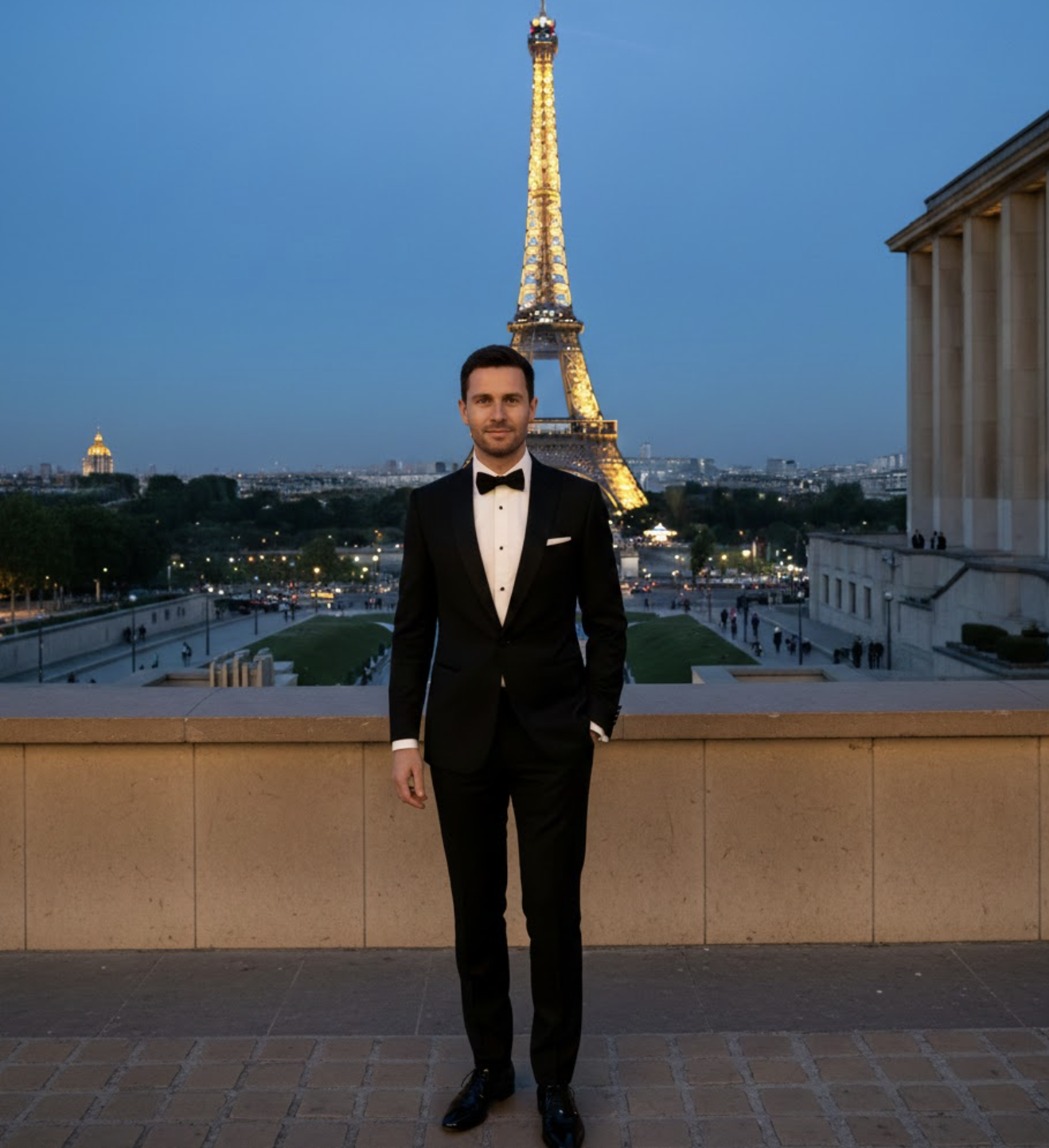 Pour un événement au Palais des Congrès, une soirée de gala à la Fondation Louis Vuitton, ou une réception dans un palace parisien, le smoking sur mesure garantit une élégance sans compromis.