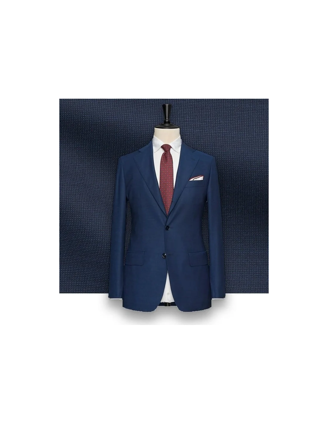Tissu parmi notre sélection premium, doublure, boutons, type de poches, broderie d'initiales — chaque détail est personnalisable lors de votre rendez-vous en salon.