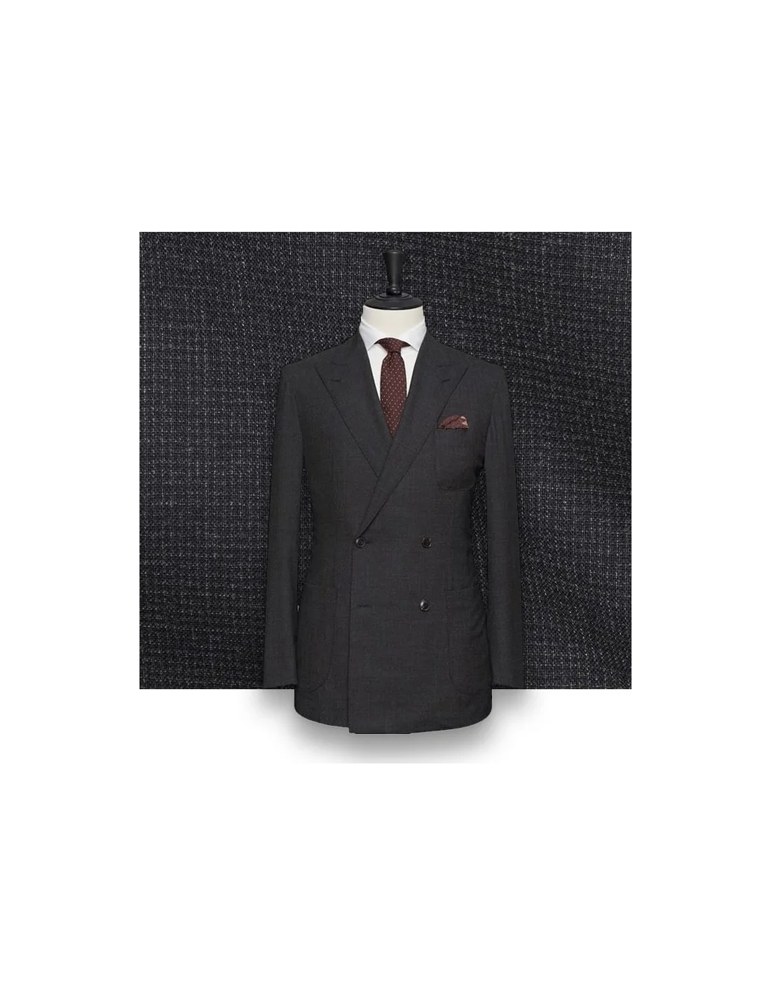 Tissu parmi notre sélection premium, doublure, boutons, type de poches, broderie d'initiales — chaque détail est personnalisable lors de votre rendez-vous en salon.