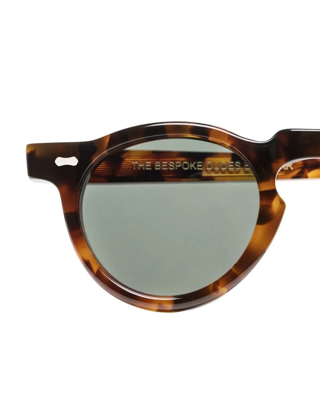 Lunettes de soleil Welt écaille avec monture arrondie, réalisée à la main en acetate Mazzucchelli (Italie) Livré dans avec son boitier de protection Verre : 100% UV protection, Filtre de protection Catégorie 3 Découvrez les autres modèles disponibles Lunettes de soleil Welt écaille A: Largeur du verre 44 mm B: Largeur du pont 25 mm C: Longueur des branches 145 mm D: Largeur de la monture 135 mm E: Hauteur du verre 39 mm The Bespoke Dudes Eyewear exalte l'excellence italienne dans le but de répondre aux demandes des clients les plus exigeants du monde entier. Les noms des collections proviennent de l'industrie de la couture sur mesure. Nos lunettes sont inspirées par une profonde appréciation de la qualité et de l'artisanat, garantie par les artisans experts de Cadore, en Italie. Nous sélectionnons un acétate extrêmement léger de Mazzucchelli Varese - une entreprise italienne historique et leader mondial dans la production de montures en acétate - et nos verres sont également fabriqués en Italie pour garantir une qualité optique incroyable et une protection UV à 100%. De plus, notre collection se compose d'accessoires intemporels, mélangeant des formes classiques avec une touche moderne, représentés par nos montures élégantes et nos verres raffinés. Les charnières de nos lunettes de soleil faites à la main en Italie ressemblent à un nœud papillon choisi dans un lot datant des années 30 et comportent quatre vis - au lieu des deux habituelles - serrées à la main. C'est une construction longue et coûteuse, mais nous ne sommes pas dans le métier pour faire des compromis sur la qualité. Découvrir les avis dans The RakeFabio Attanasio est un entrepreneur et fondateur de The Bespoke Dudes, le principal blog italien sur l'artisanat et la couture sur mesure. Avec Andrea Viganò, entrepreneur passionné par le Made in Italy et expert en internationalisation et marketing numérique, ils ont lancé ce projet en 2015 dans le but de valoriser l'image de l'Italie à l'étranger et de promouvoir son excellence et sa créativité unique. Nos accessoires sont issus de l'expertise de fabricants italiens talentueux, résistants à l'empire omniprésent des grands groupes multinationaux. Notre objectif est de garantir une continuité de l'artisanat italien et de protéger notre patrimoine, fait de la plus haute qualité et d'une créativité unique. Nos verres sont entièrement fabriqués à la main en Italie et nous avons prouvé leur qualité en visitant les ateliers et en filmant le processus de production. Ils s'adressent à tous les connaisseurs qui veulent se démarquer de la masse, sachant ce qu'ils portent. The Bespoke Dudes est disponible dans les boutiques les plus haut de gamme du monde comme 10 Corso Como et Rinascente à Milan; Harvey Nichols à Londres; Lodenfrey à Munich; Shinsegae à Séoul.Lunettes de soleil Welt écaille, de la collection Welt tire son nom de la trépointe elle-même, visible ou cachée, qui caractérise la couture Goodyear de la chaussure homme de qualité. Welt écaille ambre a une monture de couleur orange écaille avec des verres verts, fabriquée en Italie par les mains expertes de nos artisans. Monture écaille ambre / Verre vert Marque The Bespoke Dudes Eyewear Bénéficiez de 10% de réduction pour votre 1ère commande avec le code first10