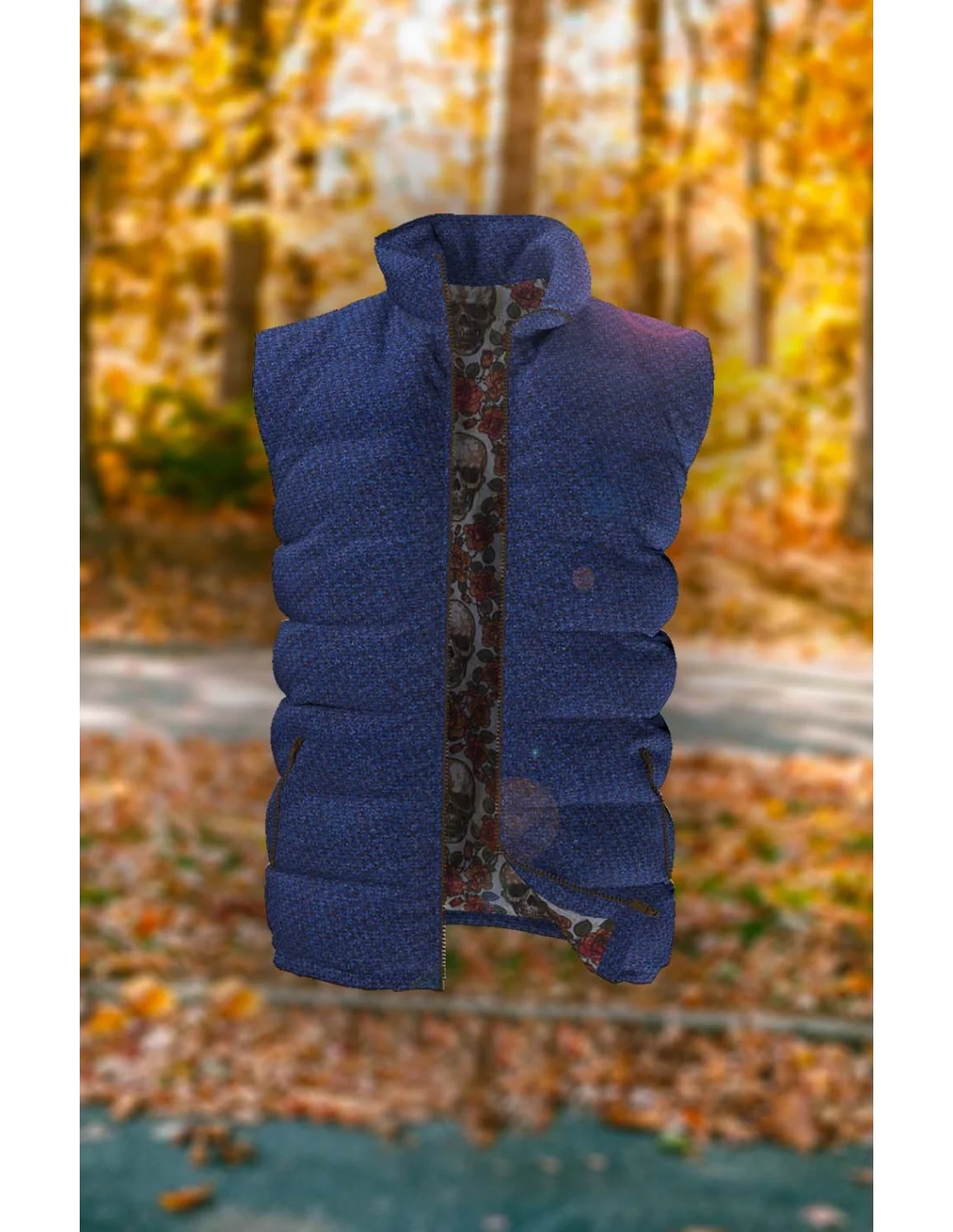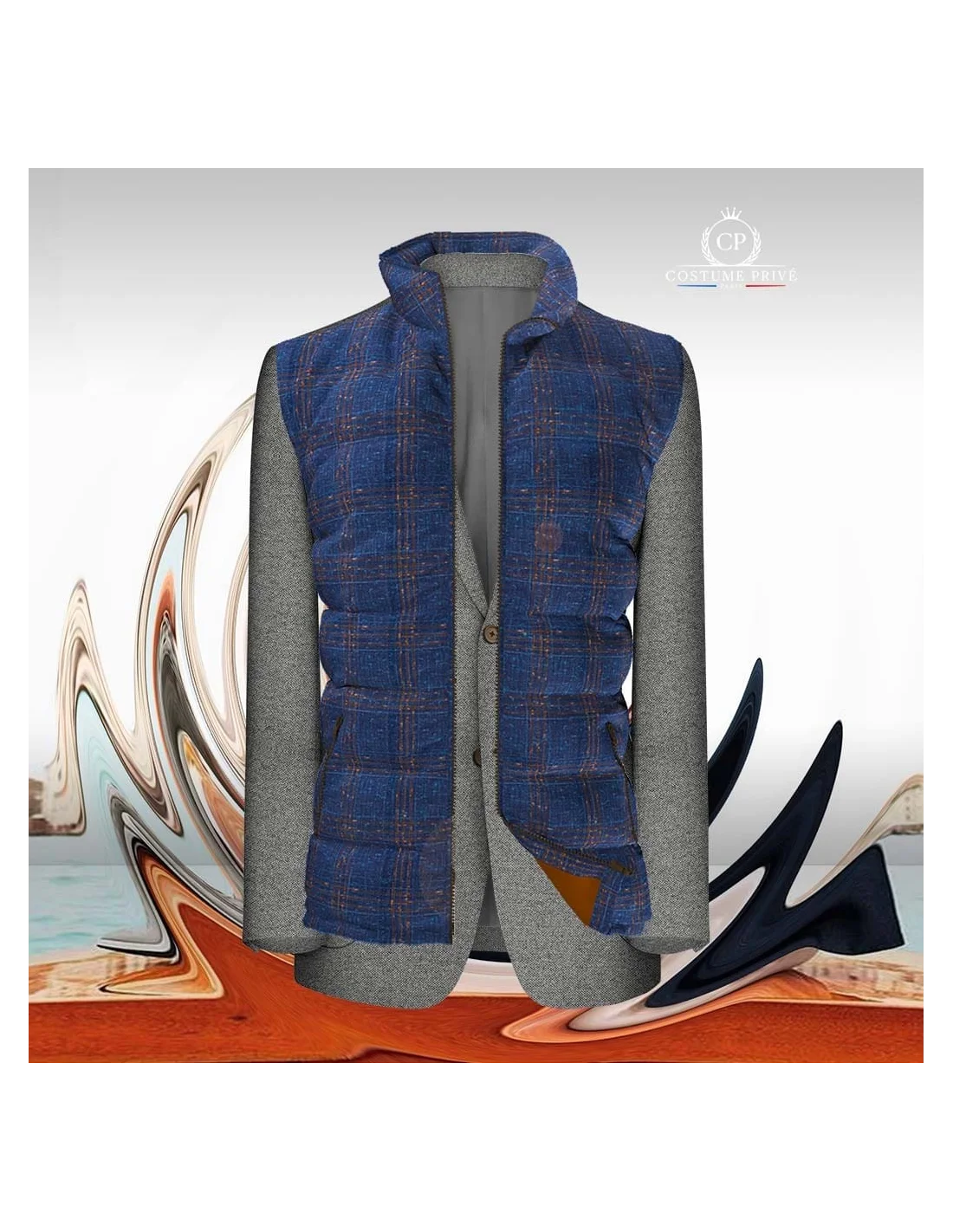 Doudoune flanelle bleu matelassée sur-mesure pour homme