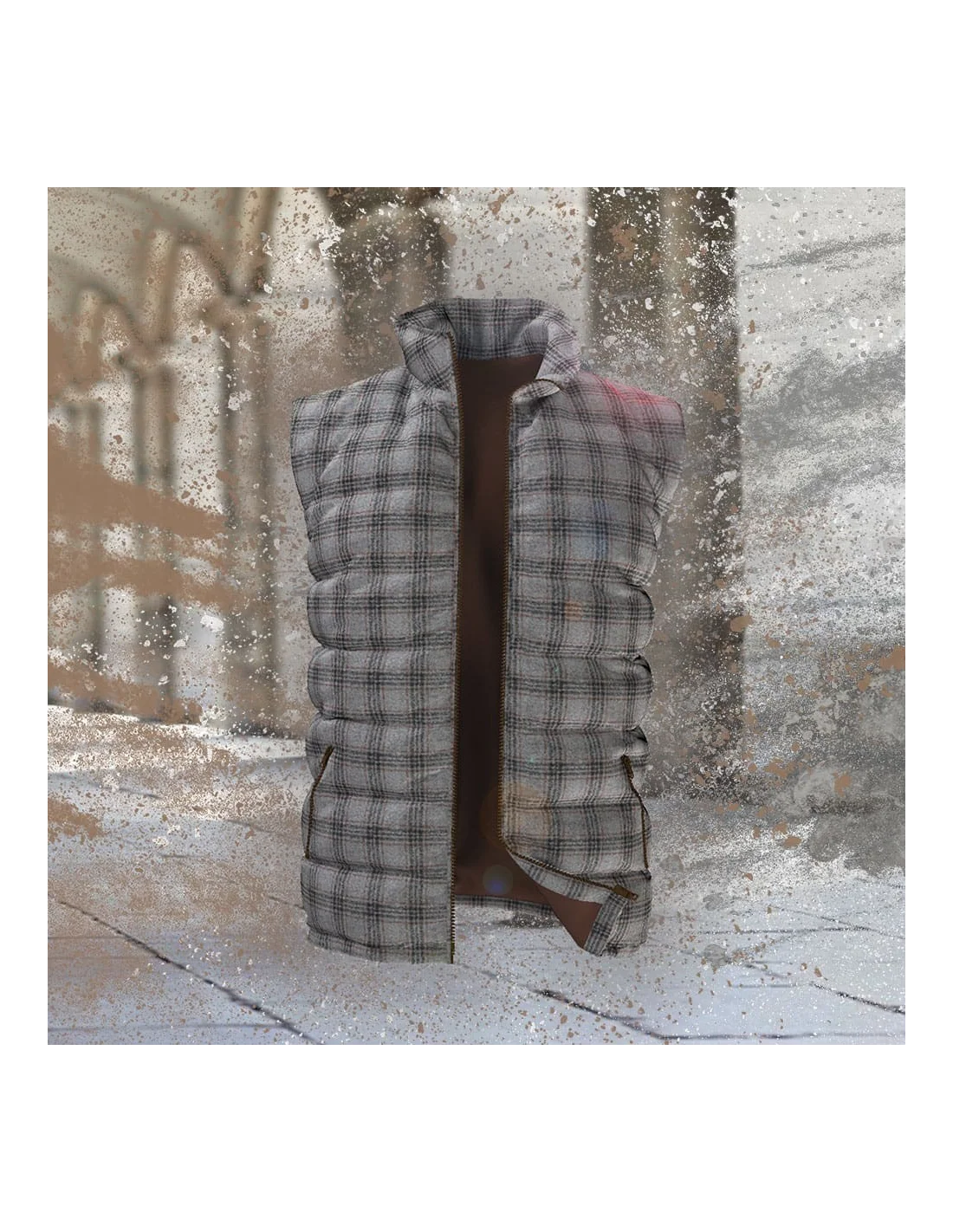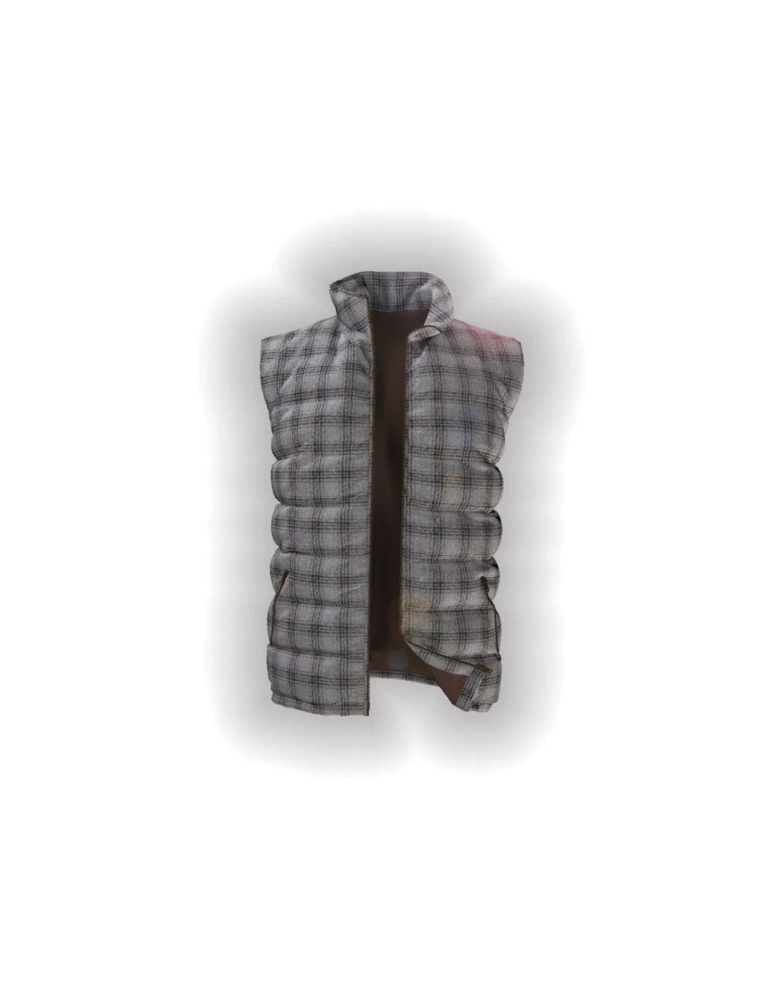 Doudoune sans manche gris carreaux marron matelassée sur-mesure pour homme