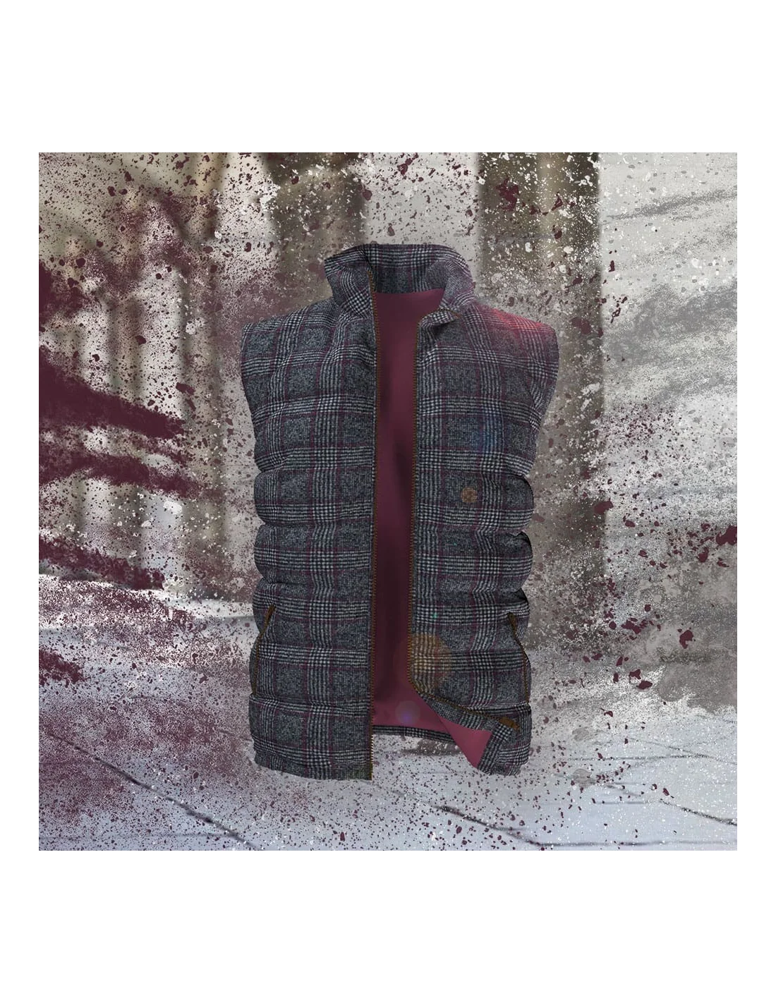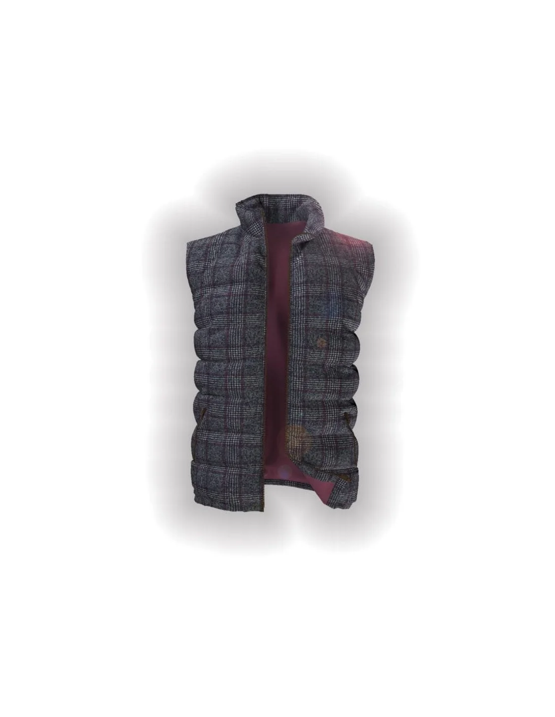 Doudoune sans manche gris carreaux violet matelassée sur-mesure pour homme