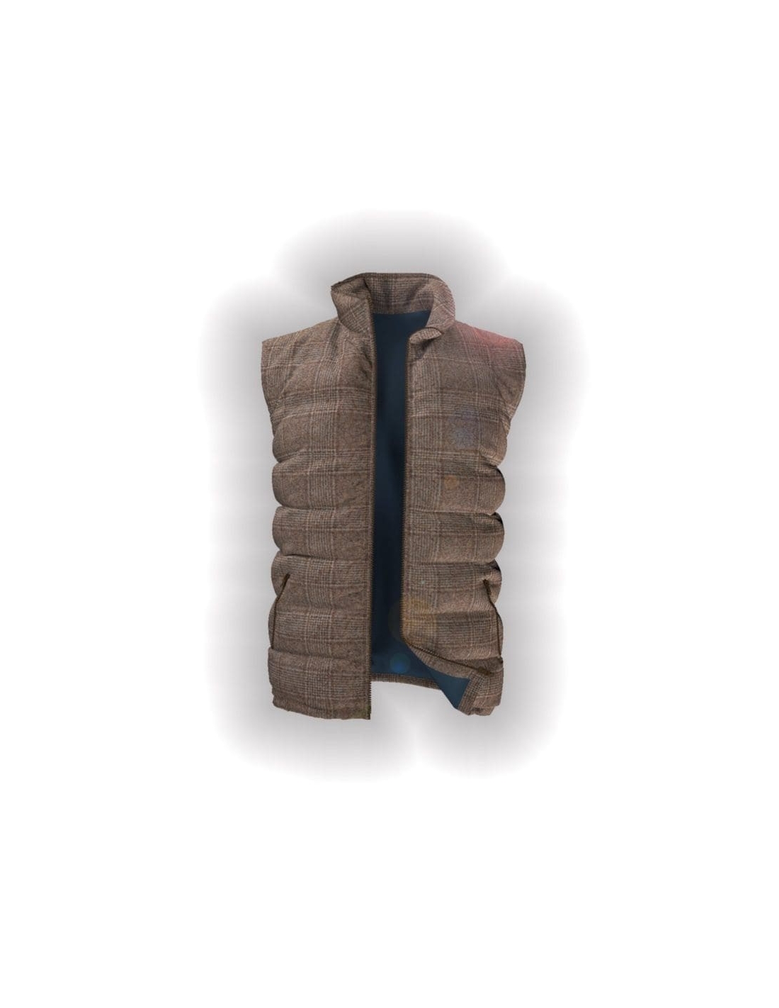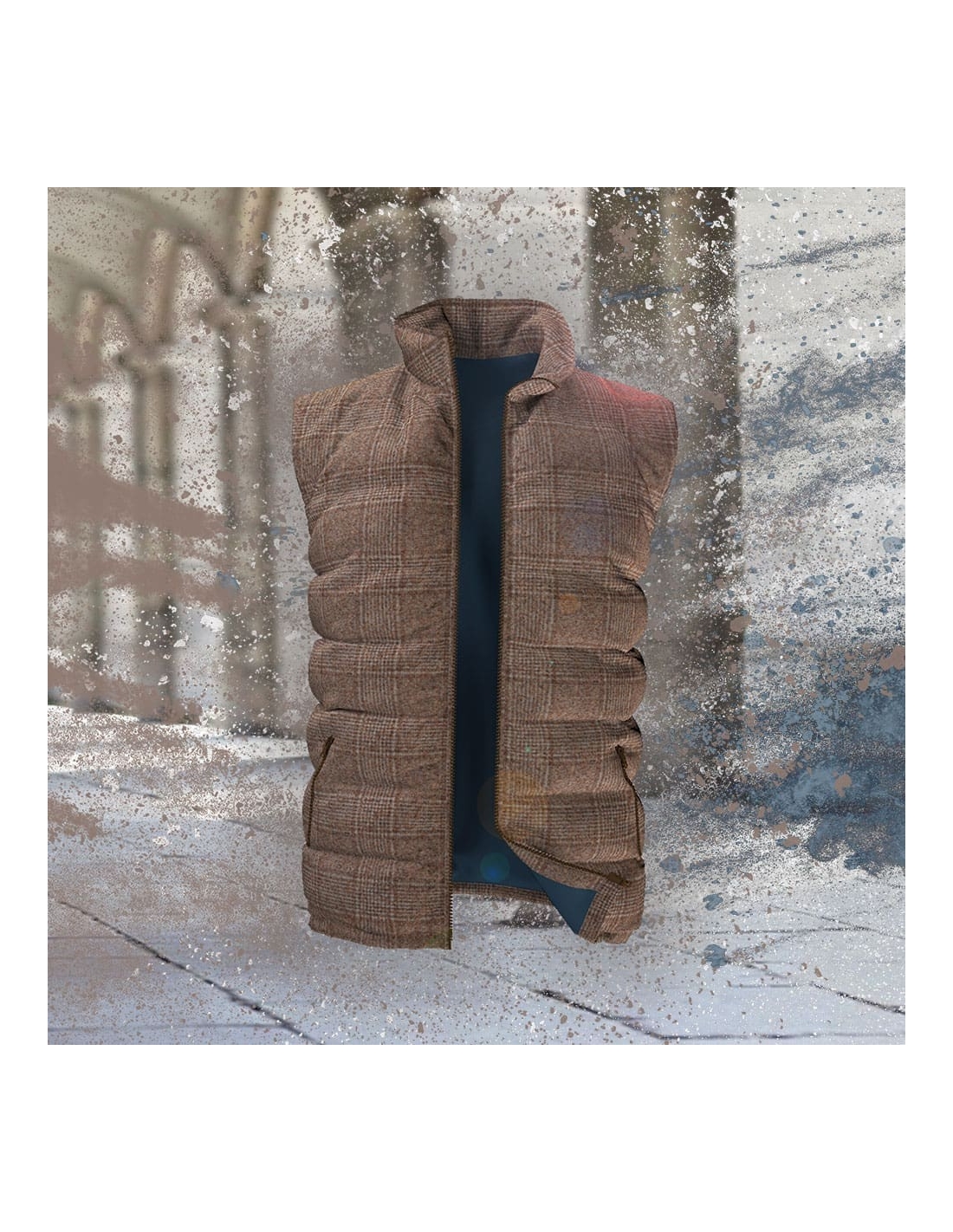 Doudoune sans manche marron clair Prince de Galles matelassée sur-mesure pour homme
