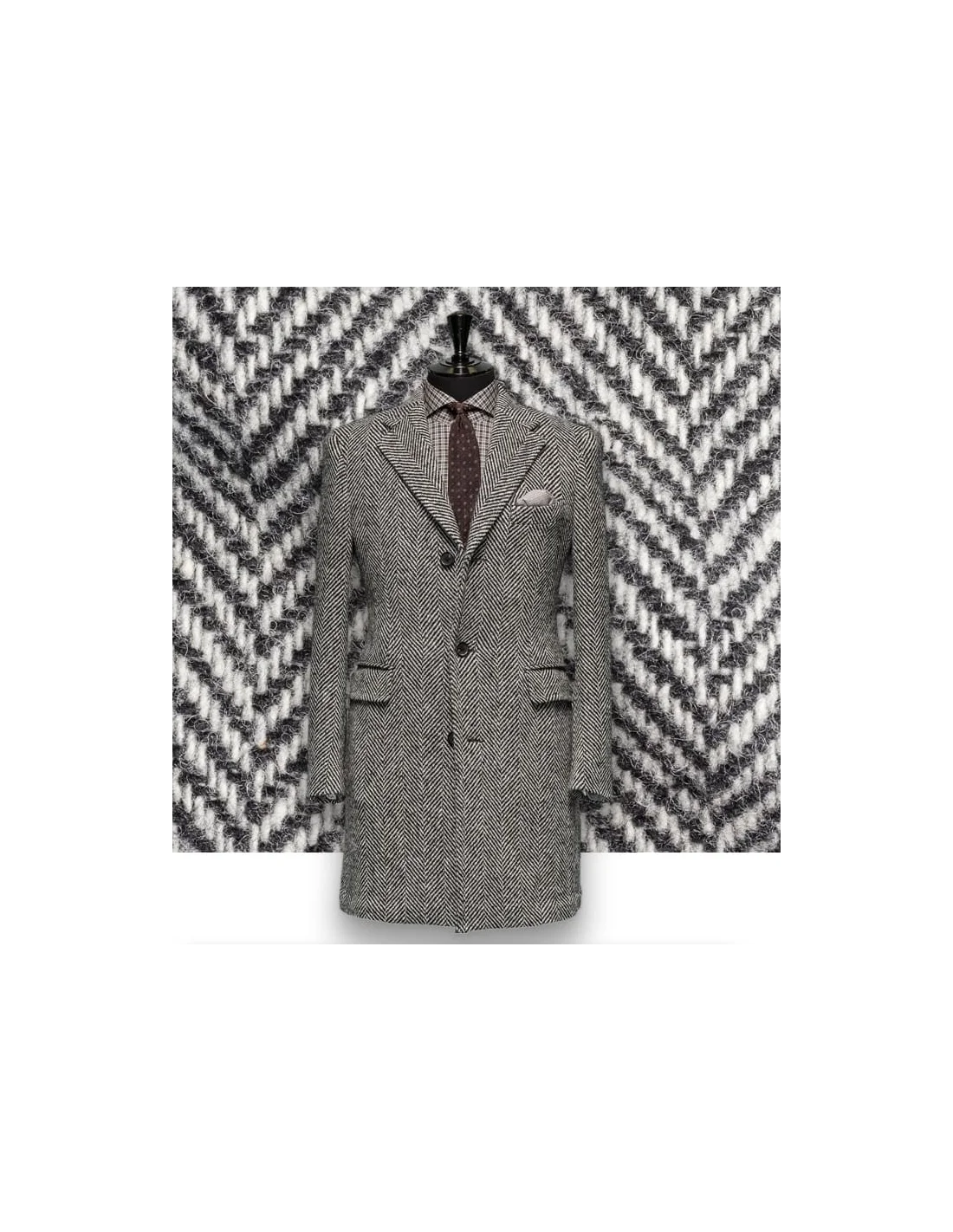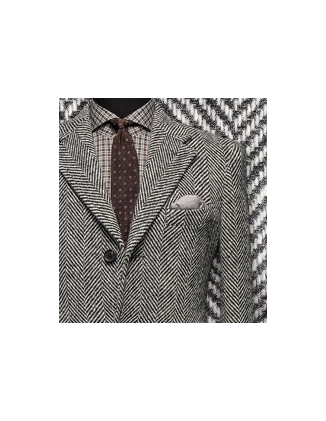 La surface garde un aspect régulier. La laine mélangée présente souvent un grain discret et une armure visuelle stable, ce qui renforce la lecture du vêtement dans un vestiaire urbain ou plus formel.