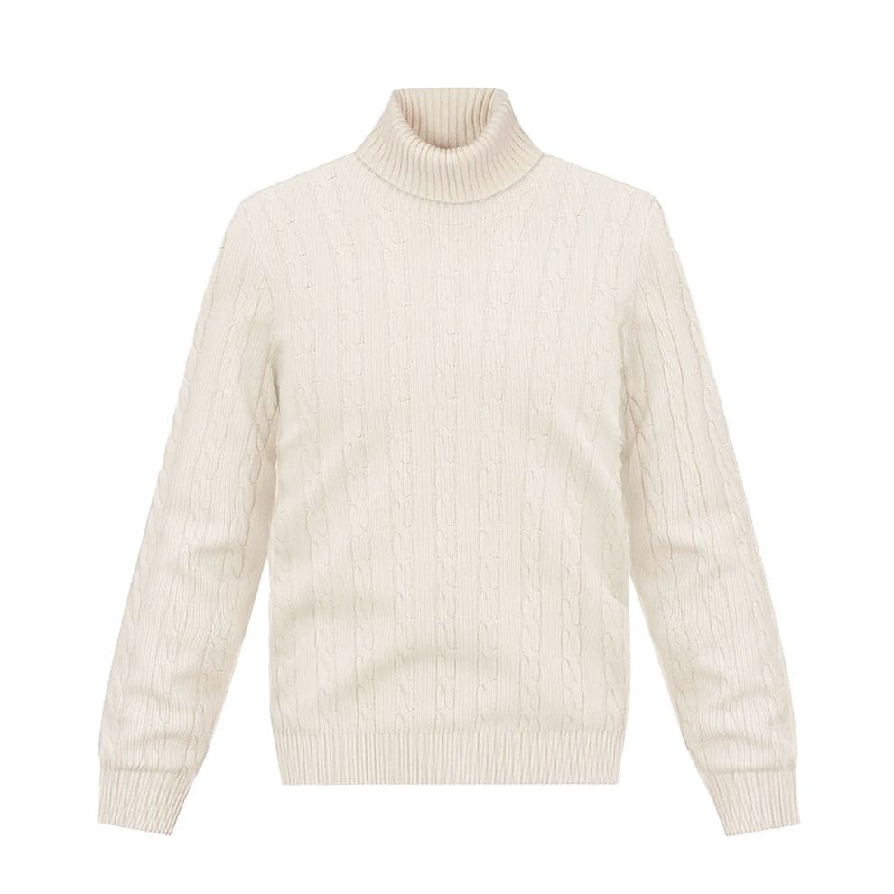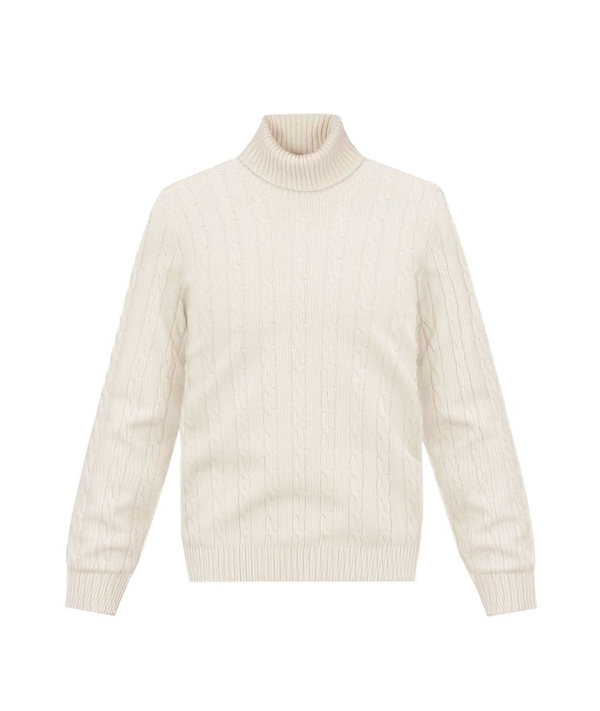 Pull col roulé torsade beige / blanc cassé, prêt à porter ou sur-mesure, au choix