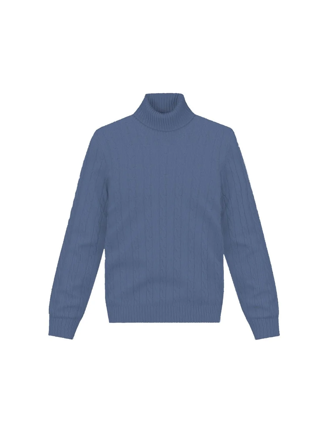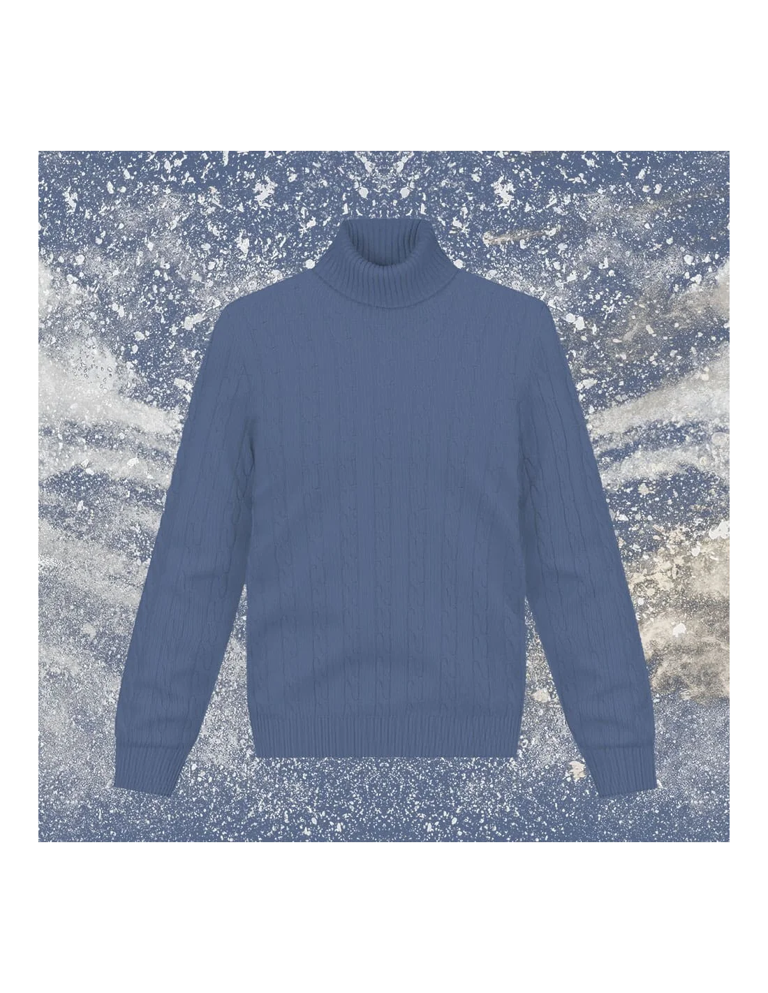 Pull col roulé torsade bleu moyen prêt à porter ou sur-mesure, au choix