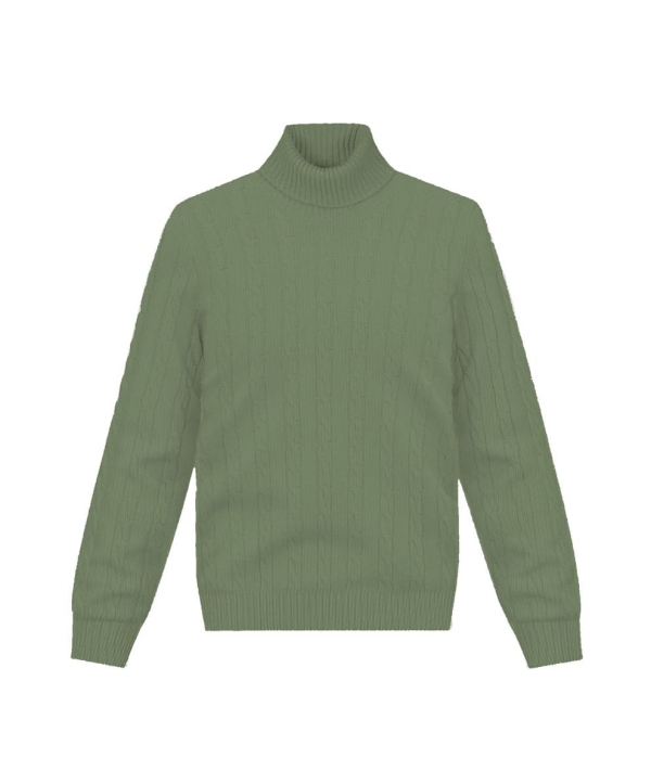 Pull col roulé torsade vert kaki