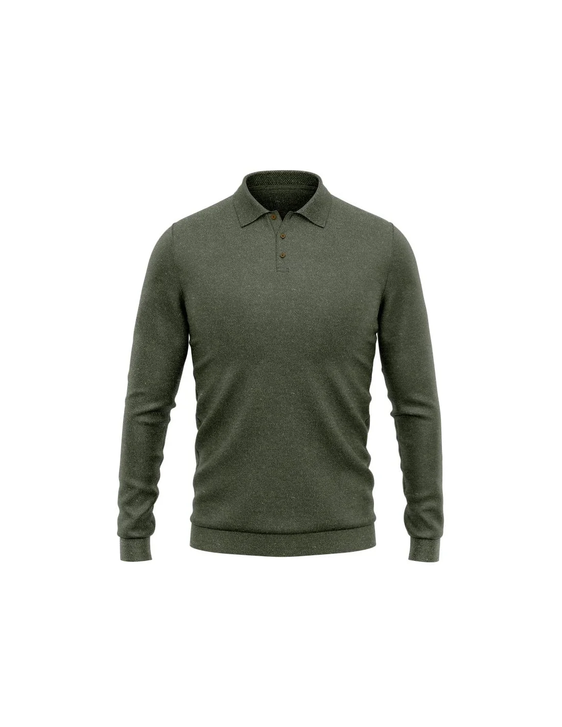 Pull polo manche longue vert olive