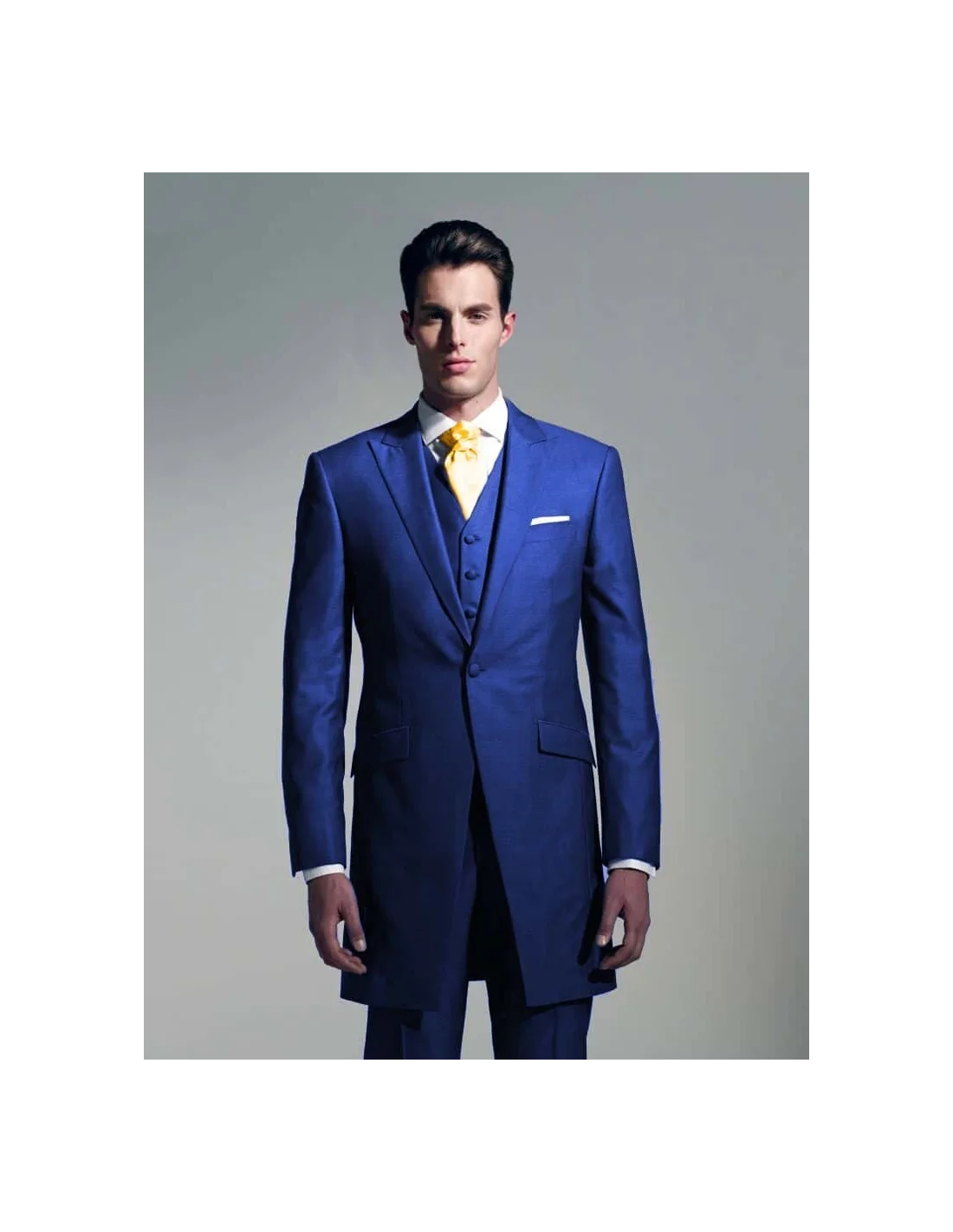 La redingote bleu roi est un choix fort pour votre tenue de mariage. Le principe de la redingote est une veste longue qui descend au milieu des cuisses. Elle apporte une allure noble et élancée, elle permet au marié de se distinguer des vestes classiques business du quotidien ou de vos invités. La redingote mariage peut se poter avec un pantalon et un gilet en ton sur ton bleu roi ou bien en dépareillé. Parce que la veste est longue, elle ne convient pas à toutes les morphologies. Il faut plutôt être grand, élancé pour qu'elle puisse vous mettre à votre avantage. Avec cette réalisation sur mesure, vous avez le choix parmi