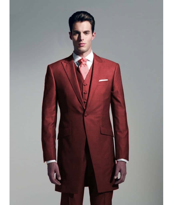 La redingote bordeaux rouge brique est un choix fort et audacieux pour votre tenue de mariage. Le principe de la redingote est une veste longue qui descend au milieu des cuisses. Elle apporte une allure noble et élancée, elle permet au marié de se distinguer des vestes classiques business du quotidien ou de ses invités. La redingote mariage peut se poter avec un pantalon et un gilet en ton sur ton ou bien en dépareillé. Parce que la veste est longue, elle ne convient pas à toutes les morphologies. Il faut plutôt être grand, élancé pour qu'elle puisse vous mettre à votre avantage. Avec cette réalisation sur mesure, vous avez le choix parmi de nombreuses possibilités de finition, de couleurs de tissu et de marques de tissu italien ou anglais, que ce soit