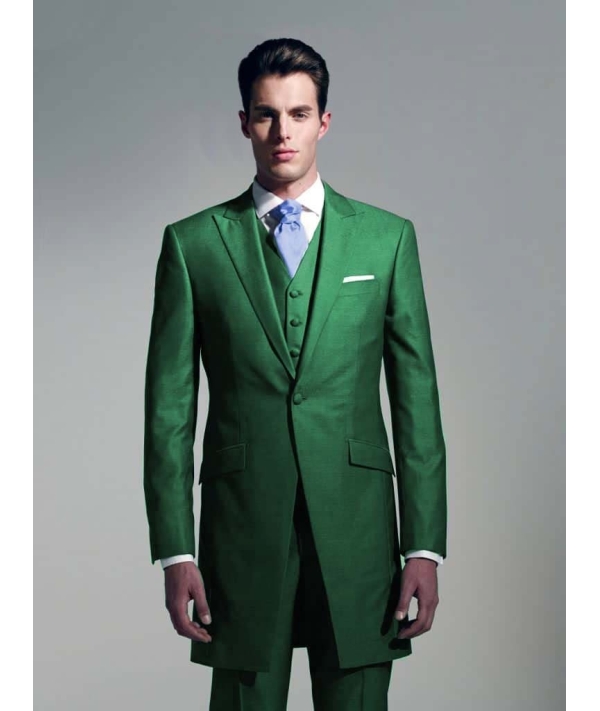 La redingote vert intense est un choix fort et audacieux pour votre tenue de mariage. Le principe de la redingote est une veste longue qui descend au milieu des cuisses. Elle apporte une allure noble et élancée, elle permet au marié de se distinguer des vestes classiques business du quotidien ou de ses invités. La redingote mariage peut se poter avec un pantalon et un gilet en ton sur ton ou bien en dépareillé. Parce que la veste est longue, elle ne convient pas à toutes les morphologies. Il faut plutôt être grand, élancé pour qu'elle puisse vous mettre à votre avantage. Avec cette réalisation sur mesure, vous avez le choix parmi de nombreuses possibilités de finition, de couleurs de tissu et de marques de tissu italien ou anglais, que ce soit