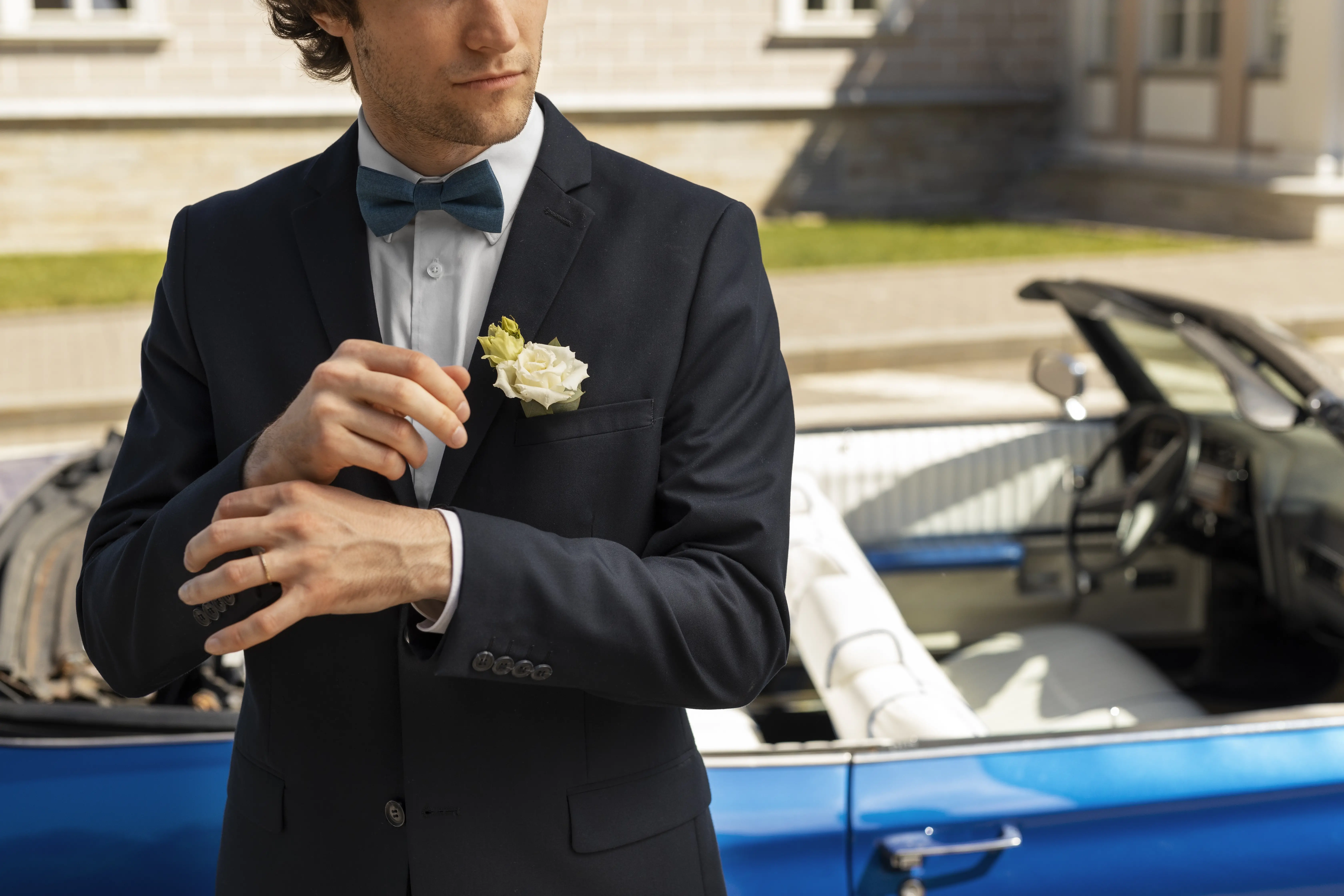 Un smoking coloré s’accorde souvent mieux avec la lumière d’un mariage en extérieur, un décor végétal, une cérémonie estivale ou un lieu de caractère.Se distinguer sans surjouer